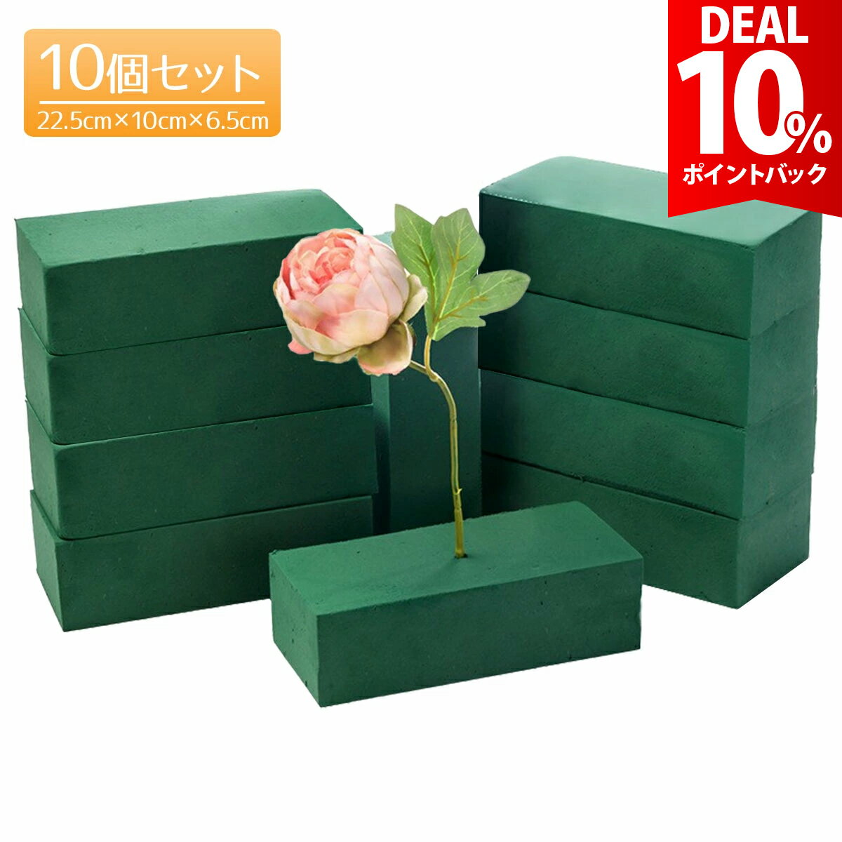 フローラルフォーム ドライ 花 生け花 オアシス 生花用 フラワーアレンジメント 吸水 スポンジ 【 お徳な10個セット 】高品質なフローラルフォームのお徳な10個セット。たくさん使いたい方におすすめのコスパ◎のセットです。 【 抜群の吸水性&保水性 】優れた吸水力で、水の吸い上げも抜群!保湿効果を保ち、大切なお花が長持ちします。 【 カットしやすい 】包丁などで簡単にカットできるので、お好みの大きさに自由にアレンジが可能です。置く場所に応じて使いやすくアレンジメントの幅が広がります。 【 植物が長持ち 】あらゆる方向からお花を刺してもしっかりホールドでき、植物に安定した給水ができます。生花の寿命を保ち、お花や葉の傷みを軽減できます。 【 幅広く活用できる 】生花店、結婚式のフラワーアレンジメントや、カブトムシ、オオクワガタ、鈴虫などの蛹室、隠れ家などにもオススメです。 ご購入から30日間はメーカー保証付きです。 メーカー希望小売価格はメーカーサイトに基づいて掲載しています -->y785 【 お徳な10個セット 】高品質なフローラルフォームのお徳な10個セット。たくさん使いたい方におすすめのコスパ◎のセットです。 【 抜群の吸水性&保水性 】優れた吸水力で、水の吸い上げも抜群!保湿効果を保ち、大切なお花が長持ちします。 【 カットしやすい 】包丁などで簡単にカットできるので、お好みの大きさに自由にアレンジが可能です。置く場所に応じて使いやすくアレンジメントの幅が広がります。 【 植物が長持ち 】あらゆる方向からお花を刺してもしっかりホールドでき、植物に安定した給水ができます。生花の寿命を保ち、お花や葉の傷みを軽減できます。 【 幅広く活用できる 】生花店、結婚式のフラワーアレンジメントや、カブトムシ、オオクワガタ、鈴虫などの蛹室、隠れ家などにもオススメです。 ■セット内容■ オアシス10個セット ■サイズ(約)■ 22.5cm×10cm×6.5cm ※大変柔らかい素材の為、梱包時や輸送中に傷やへこみが生じる場合がございます。予めご了承ください。 ご注文前にご確認下さい ●よくあるご質問●