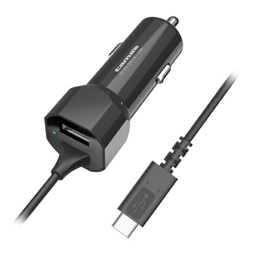 -------------------------------------------------------------- 画像はイメージです。 ※ PC環境により実際の色味や質感と異なって表示される場合がございます。 ※ 部品・パーツなどの一部の商品では本体の商品画像を使用しております。 ※ 製品の仕様・画像・パッケージは、メーカー側から予告なく変更される場合があります。 -------------------------------------------------------------- USB Type-Cコネクタに対応!巻取り式のUSB Type-Cコネクタと、おまかせ充電に対応したUSBポートを搭載し、2台のスマホを同時に充電できる車載充電器。■ 自動車のアクセサリソケットに接続するだけで、スマートフォン・タブレットを充電できる車載充電器です。■ 最新のUSB規格であるUSB Type-Cコネクタに対応しています。■ 巻取り式のUSB Type-Cコネクタと、おまかせ充電に対応したUSBポートを搭載し、2台のスマートフォンを同時に充電可能です。(合計最大出力3Aまで)■ USB Type-Cケーブルは約60cmの巻取りリールタイプで、取り回しがしやすく、すっきりと収納できます。■ 巻取りスイッチ付きで、ワンプッシュで簡単に巻取り可能です。■ USBポートは、接続機器を自動で見分けて最適な出力で急速に充電できる“おまかせ充電”に対応しています。■ 普通車はもちろん、トラックなどの大型車でも使用できる12V/24V入力対応です。■ 電源が入ると青く点灯する通電確認用LEDランプが付いています。■ 屈曲による内部摩擦に強く、ショートを起こしにくい短絡防止同軸ケーブルを採用しています。■ 過電流・過電圧・ショートに対する保護機能を搭載したあんしん安全設計です。【仕様】対応機種:Type-CコネクタまたはUSBポートから合計最大5V/3Aまでの出力で充電可能な機器使用電源:アクセサリソケットコネクタ形状:USB(Type-C)コネクタ(オス)定格入力電圧:DC12V/24V定格出力電圧:DC5V定格出力電流:合計最大出力3A外形寸法:幅46×奥行90×高さ31mm(突起部含まず)質量:約47gケーブル仕様:巻き取り式ケーブルケーブル長:約60cm対応ソケットサイズ:Φ20.8mm〜Φ22.0mmカラー:ブラック発光色:ブルー認証:認証Type-C端子使用保証期間:12ヵ月使用可能地域:日本その他:USBポートにはおまかせ充電搭載 【メーカー・ブランド】 エレコム / えれこむ / ELECOM 【#1】