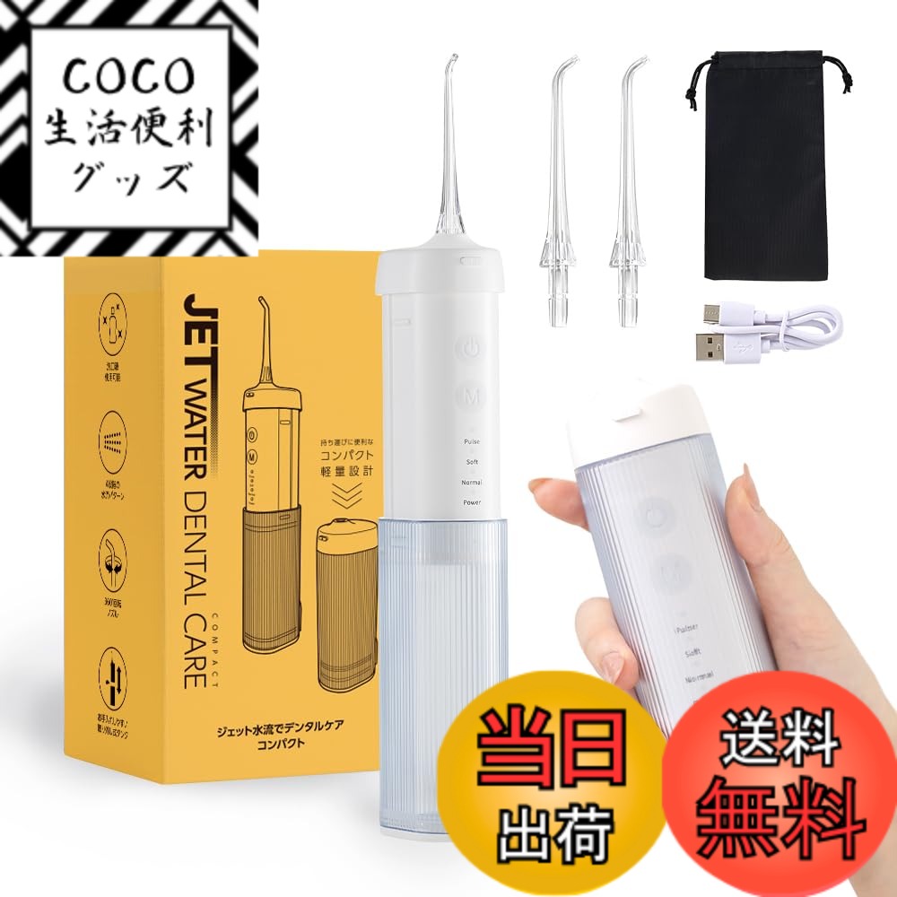 商品情報商品の説明外出先でも気軽にデンタルケア!持ち運びに便利な軽量設計で、コンパクトに収納できる口腔洗浄器。歯磨きで取りきれなかった歯の表面の汚れを、ジェット水流で洗い流します。4段階の水流パターンと360°回転ノズルで、歯間や歯周ポケットに入り込んだプラーク(歯垢)もしっかり除去!洗口液を入れて使用することで口臭ケアにも。取り外し式タンクでお手入れしやすく、防水設計IPX7なのでお風呂でもお使いいただけます。USB充電式の長時間バッテリーで、1回の充電で約40回使用できます。主な仕様 【商品仕様】商品サイズ/(約)15.7x6.7x4.9cm (ノズル含まず・タンク収納時)、重量/(約)270g (洗浄液含まず)、タンク容量/210ml、材質/ABS樹脂・ポリカーボネート、電池/Li-ion充電池 1500mAh、定格電圧/3.7VDC、消費電力/6W、充電ポート/USB-C (USB電源アダプターを接続)、充電時間/(約)4時間、電池寿命/(約)500回 (充放電回数)、1回充電あたりの使用回数/(約)40回 (ノーマルモード時)、防水性能/IPX7、付属品/標準ノズルx2本・携帯用ポーチ・USB-C充電ケーブル・取扱説明書(書付)【歯間洗浄とマウスウォッシュを同時に】歯磨きで取りきれなかった歯の表面の汚れを、ジェット水流で洗い流します。歯並びの悪いところや、インプラント・歯列器具にもおすすめです。4段階の水流パターンと360°回転ノズルで、歯間や歯周ポケットもしっかり洗浄!洗口液を入れて使用することができるので、マウスウォッシュも同時にできて口臭ケアに。【コンパクト設計で持ち運び可能】手に収まりやすいスリムタイプ&約270gの軽量設計で、女性にも使いやすくなりました。さらに、タンク内に本体を収納すれば、高さ約15cmまでサイズダウン!旅行や出張・職場などで使いたい時に、気軽に持ち運べて便利です。【IPX7防水仕様/省エネ設計】IPX7の防水設計なので、お風呂や洗面所など湿気の多い場所で使用・保管ができます。使用後は丸洗いも可能。入浴しながらお口のケアも!また、使い勝手の良いUSB充電式を採用しているので、どこでも充電可能。1500mAhバッテリーにより、4時間のフル充電で20日間使用できる省エネ設計。※ノーマルモードで約40回使用可、1日2回使用と仮定。使用状況によって異なります。※IPX7とは:防水機能を表す9段階の保護等級(0から8まで)のうち、常温の水道水の水深1mに沈め約30分間浸けても機能が動作することを意味します。【取り外せる給水タンクで衛生的】コンパクトながら、たっぷり使用できる210mlの給水タンクを搭載。タンクは取り外すことができるので、内部のお手入れが簡単。乾かしやすいため、水が残りにくく衛生的にお使いいただけます。