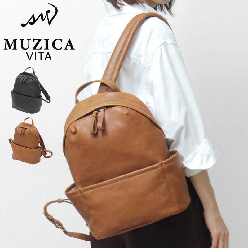 ≫よくあるご質問 Q&Aはこちら≪ 関連アイテム >> ムジカヴィータ/MUZICA VITA 一覧 >> リュック 一覧 >> A4が入るバッグ 一覧 ムジカヴィータ リュック の関連ワード ■カラー ブラック / BLACKE、黒、くろ キャメル / CAMEL、ブラウン、BROWN、茶色 ■デザイン/特徴 bag、鞄/かばん/カバン、本革バッグ、本革リュック、肩がけバッグ/肩掛けバッグ、レザーバッグ、レディースバッグ、メンズバッグ、デイリーバッグ、通勤バッグ、お仕事バッグ、日本製、日本製バッグ ■用途 普段/デイリー、通勤/仕事/ビジネス/会社/職場、オフィス/OL、お出かけ/お出掛け、ショッピング/買い物、旅行/観光/レジャー ■入るもの A4サイズ(ノート)、タブレット/ノートPC/ラップトップ、500mlペットボトル、折り畳み傘/日傘 ■イベント プレゼント/ギフト/贈り物/贈りもの、自分へのご褒美、誕生日/バースデー、クリスマス、ホワイトデー、母の日、敬老の日、御祝い/お祝い、記念日/彼女/妻/嫁/奥さん/恋人、卒業祝い/入学祝い、就職祝い、成人祝い、新調 ■商品イメージ 上質、上品、大人っぽい、高級感/ラグジュアリー、エレガント/エレガンス、きれいめ/キレイめ、大人カジュアル、スタイリッシュ、クラス感、お洒落/おしゃれ/オシャレ、大人可愛い/かわいい/カワイイ、フェミニン、シック、都会的、アーバン、シンプル、個性的/個性派、人気、オールシーズン/年中、機能的、ブランド、女性用、男性用、年齢層、年代/20代/30代/40代/50代/60代/70代/80代/90代 メーカー希望小売価格はメーカー商品タグに基づいて掲載していますMUZICA VITA ムジカ ヴィータ / レザーリュック M5072 シーンレスで長く使える。本革の大人デイリーリュック エレガントな女性のためのレザーバッグ・革小物を展開する日本発ブランド「MUZICA VITA(ムジカヴィータ)」。流行に左右されないシンプルなデザインと、確かな品質の本革リュック。いくつになってもおしゃれを楽しみたい大人の女性にぴったりです。両手が自由になるので、旅行やショッピングにも最適。肩への負担が少ないよう、太めのショルダーベルトにもこだわりました。 アクティブな日に便利なリュックバックスタイルを素敵に演出 MODEL:157cmSHOES:カミナンド/CAMINANDO 本革の風合いを長く愛せる、大人のためのデイリーリュック。 シンプルなデザインと上質なレザーは、トレンドや年齢を問わず使えるタイムレスな魅力。A4対応で、通勤のきれいめスタイルから、週末のカジュアルな装いまで、シーンを選ばず活躍します。両手が空くので、移動中や旅先で写真を撮る際にも便利です。機能性はもちろん、旅先のファッションにも馴染む洗練されたデザインは、大人の女性の旅に最適。軽装になりがちな旅の装いも、このリュックを持つだけでワンランク上の着こなしになります。 ショルダー部分はしっかり肉厚で幅広に設計されているため、重たい荷物を入れた際にも肩に食い込みにくく、負担を軽減します。また、長さは調節可能となっており、お客様の体型に合わせてしっかりフィットさせることができます。厚着の冬場から薄着の夏場まで、最適な位置に調節できます。 A4サイズがジャストで収まりスマートな収納を叶える便利な設計 メイン収納は、左右どちらからでも開閉しやすいダブルファスナー仕様。荷物の多い日も、美しいフォルムを保ちながらスマートに出し入れが可能です。 A4対応でガイドブックやポーチもしっかり収納できる頼もしいサイズ感。 内部には内ポケットを配置。スマートフォンやパスケースなど、バッグの中で迷子になりがちな小物をすっきり整理できます。 両サイドのオープンポケットは、ハンカチなどすぐに取り出したいものの収納に便利です。フロントには立体的なファスナーポケットがあり、長財布も収納可能。さらに内側にはキーストラップ付きで、パスケースや鍵をつなげば、バッグの中で迷子になることなくサッとアクセスできます。 背面にはファスナー付きの隠しポケットを配置。パスポートなどの貴重品を、背中に密着させて持ち運ぶことができるため、人混みや旅行先でも安心感があります。さっと取り出したい小物入れとしても非常に便利です。 使うほどに深まる風合い。クラス感を高める上質なレザー しっとりと肌に馴染むような柔らかな牛革を使用しています。きめ細かなシボ感が上品で、カジュアルな中にも高級感を演出。この本革ならではの風合いは、時を経るごとに味わい深く変化し、お客様だけのバッグへと成長します。流行に左右されない素材で、長くご愛用いただけます。 革本来のなめらかなタッチ感を感じていただける牛革を使用。あえて表面加工を施していないため、天然皮革ならではの傷やシワ、色ムラがございます。また、ご使用いただく際も通常の革より傷等が付きやすくなっております。それも素材の味として唯一無二のエイジング(経年変化)をお楽しみください。 カラーバリエーション ※全てのカラーにおいて、裏地の色は統一