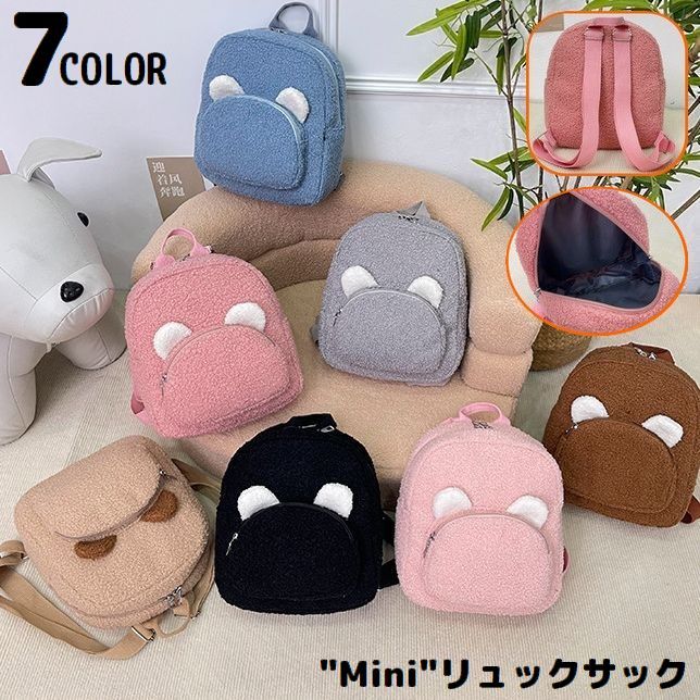 かわいいクマさんの耳付きデザイン♪ コンパクトなレディース用ミニリュックです。 お子様とご一緒に親子でお揃いペアルックも◎ ※内ポケット等はございません。 【サイズについて】 画像をご参照ください。 【カラーについて】 生産ロットにより柄の出方や色の濃淡が異なる場合がございます。 お使いのモニターや撮影時の光の加減などにより 画像と実際の商品のカラーが異なる場合もございます。 予告なしにカラーやデザインなどの変更がある場合もございます。 【素材について】 ポリエステル他