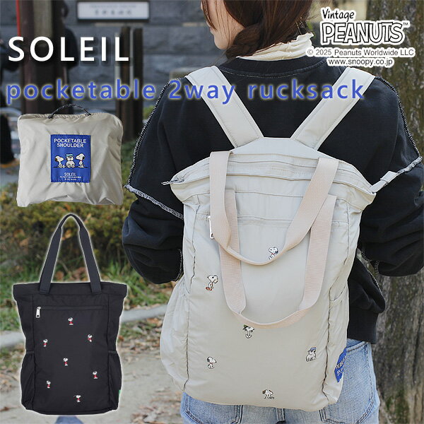 PEANUTSのアートを小さな刺繍で表現した人気のSOLEILシリーズ。デイリーやトラベルシーンで大活躍のポケッタブルデイパックが、形状をより使いやすくリニューアルして登場しました♪使わないときはコンパクトに内側のポケットに収納できちゃいます! リュックサックとトートバッグ、どちらでも持てる2WAY仕様。容量もたっぷりで、ピクニックやアウトドアにもおすすめです。シンプルなデザインなので、どんなファッションにも合わせやすいバッグですよ。 サイズ:幅25×奥行13.5×高さ42cm 素材:ポリエステル 耐荷重:8kg 容量:約13L 備考:ポケッタブル、2WAYPEANUTSのアートを小さな刺繍で表現した人気のSOLEILシリーズ。 デイリーやトラベルシーンで大活躍のポケッタブルデイパックが、形状をより使いやすくリニューアルして登場しました♪ 使わないときはコンパクトに内側のポケットに収納できちゃいます! リュックサックとトートバッグ、どちらでも持てる2WAY仕様。 容量もたっぷりで、ピクニックやアウトドアにもおすすめです。 シンプルなデザインなので、どんなファッションにも合わせやすいバッグですよ。 BEIGE…スヌーピーとスパイク、オラフ、マーブルス、アンディ。個性豊かな兄弟たちの刺繍♪ BLACK…スヌーピーの変装の中でも人気が高いJOECOOLデザインの刺繍!クールで自信に満ちたかっこいいスヌーピーです。 刺繍もサイドポケットのネームもとってもかわいいワンポイントになっています。 ※使用ディスプレイ、撮影環境によって商品の色は見え方が多少異なりますので予めご了承願います。 トートバッグ・リュックサックとして使用できる2WAY仕様♪ 気軽に持てるトートバッグ。両手が空くリュックサック。 シーンに応じて持ち方が変えられるのは嬉しいポイント! 肩ベルトは長さ調節が可能。 背中に当たる部分はメッシュ生地を使用し、蒸れにくく快適にお使いいただけます。 軽量でとっても使いやすいデイパック。 口元はファスナー開閉で安心です。 フロントには大きなファスナーポケットが付いています。 スマホやカードケースなど、すぐに取り出したいものの収納に便利! 両サイドにはオープンポケット付き。 折りたたみ傘やボトルを入れることができます。 ファスナーの引き手にはキュートなスヌーピーの刻印♪ 細かいディテールにもこだわっています。 リュックにはマチがあり、容量はたっぷり13L。耐久性もばっちりです。 必需品だけでなく、タオルや着替え、洗面具などもばっちり入ります。 内側には面ファスナー付きのポケットと、本体を収納するためのファスナー付きポケットが付いています。 大きめのシートやブランケットも入るので、アウトドアにもぴったり♪ 内側のポケットに本体を収納できるポケッタブル仕様! バッグはしなやかな生地を使用していて、簡単に小さくたたむことができます。 使わないときはたたんで、コンパクトに♪ 旅行バッグにそっと忍ばせておけば、出先でお土産など荷物が増えたときに重宝しますよ♪ 毎日のお出かけやトラベル、ピクニック、運動会などの行事にかかせないリュックサック。 お弁当と水筒、おやつなどを入れて、ちょこっとアウトドアにもオススメですよ。 深くてたくさん入るから着替えを入れてジムやスパに行くのにも◎ 自転車やバイク通勤、通学にももってこいです。 ・この製品は各素材とも摩擦や湿気(水・汗)に弱いため、シミ・色落ち・着色する場合があり、特に白系の衣類着用や雨天でのご使用には十分ご注意ください。 濃色製品は特にご留意願います。 ・素材の特性上、この製品と衣類や他のバッグが擦れると互いの生地の風合いに変化が生じる恐れがあります。 また濡れたままの長時間放置や高温高湿の環境での保管は濃色部分の色移りやカビ・異臭の原因となりますので定期的に乾燥させてからご利用ください。 ・型崩れや色落ちが生じますので洗濯はお避けください。 ・刺繍部分の表面は引っ掛かりやすいため、アクセサリー類や周囲のものとの引っ掛かりにご注意ください。 ・アルコール類や化粧品類(ハンドクリーム等)などによる化学変化が起きることもあります。 ・車中・火のそば・直射日光・高温多湿の場所に置くと軟化・変形・黄変・色移りする恐れがありますので十分ご注意ください。 ・金属類等メッキの耐久性は種類によって異なり、年月とともに変化し剥離や腐食した後、衣類等に付着することもあります。ご注意ください。 ヘミングス ピーナッツ ソレイユ ウィークエンドショルダー ヘミングス ピーナッツ ソレイユ ウィークエンドデイパック ピーナッツ ソレイユ ポケッタブルショルダー ヘミングス ピーナッツ ソレイユ ウィークエンド トート ルートート トール トランシェ ピーナッツ ピーナッツ キルティングショルダーM シュシュリュック SOLEIL ソレイユ ウィークエンドデイパック ソレイユ Keeper リュック ピーナッツ キルティングトートL