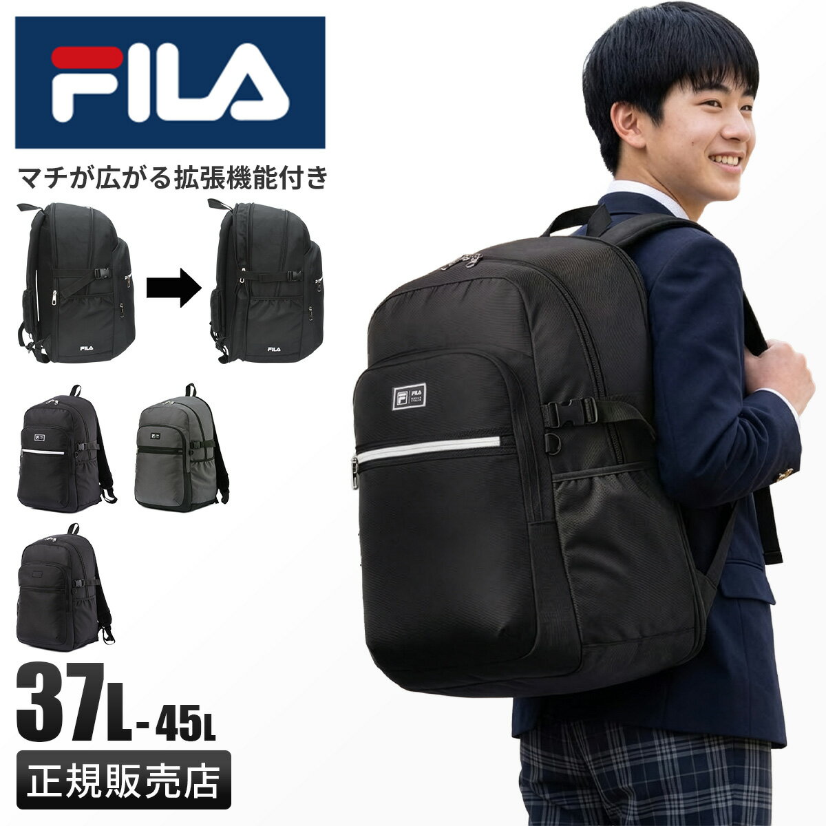 FILA -フィラ- フィラは、1911年、イタリアのビエラで生まれました。イタリア生まれの正統な血統、イタリアのスタイル、情熱、創造性、そしてイタリア人気質がフィラの起源であり、それを今に引き継いでいます。フィラは、競争や記録への挑戦といったことよりも、観たり参加したりということを日々の生活の中で楽しむことでスポーツとかかわっています。ブランドページ>> ■FILA フィラ / ヒメル シリーズ / リュックサック デイパック スクール 37L-45L 容量拡張 撥水加工【7702】 1泊の小旅行や部活などに便利な大容量リュック。 荷物量によってマチを調整できるエキスパンダブル機能付きのため、お出かけ先で荷物が増えてしまっても安心です。 正面ポケットにはオーガナイザーポケットが付属。ショルダー部分にはマチ付きポケットがついているため、リュックを背負いながら小物を収納することができます。 本体素材には撥水加工が施されているため、雨の日でも荷物が濡れる心配がいりません。 至る所に有難い機能が盛り沢山のおすすめリュックです。 スペック ブランド |FILA / フィラ シリーズ |ヒメル 品番 |7702 形状 |リュックサック |デイパック スクール 外寸 |W330×H510×D200/230[mm] 重量 |約 860g 収納サイズ |B4ファイル 容量 |約 37L(拡張時:約 45L) |+前ポケット:約 4L 滞在目安 |1泊程度 主素材 |ポリエステル(撥水加工) 生産国 |中国 ATTENTION ●サイズはメーカー公称値(許容される最小値と最大値の中心値)です。 ●この商品は撥水性がありますが、強い雨や摩擦よって、また縫い目やファスナーから水がしみ込む事がありますのでご留意ください。 関連商品 ブランド: FILA シリーズ: ヒメル アイテム: スクールリュック 絞り込み: FILA リュック