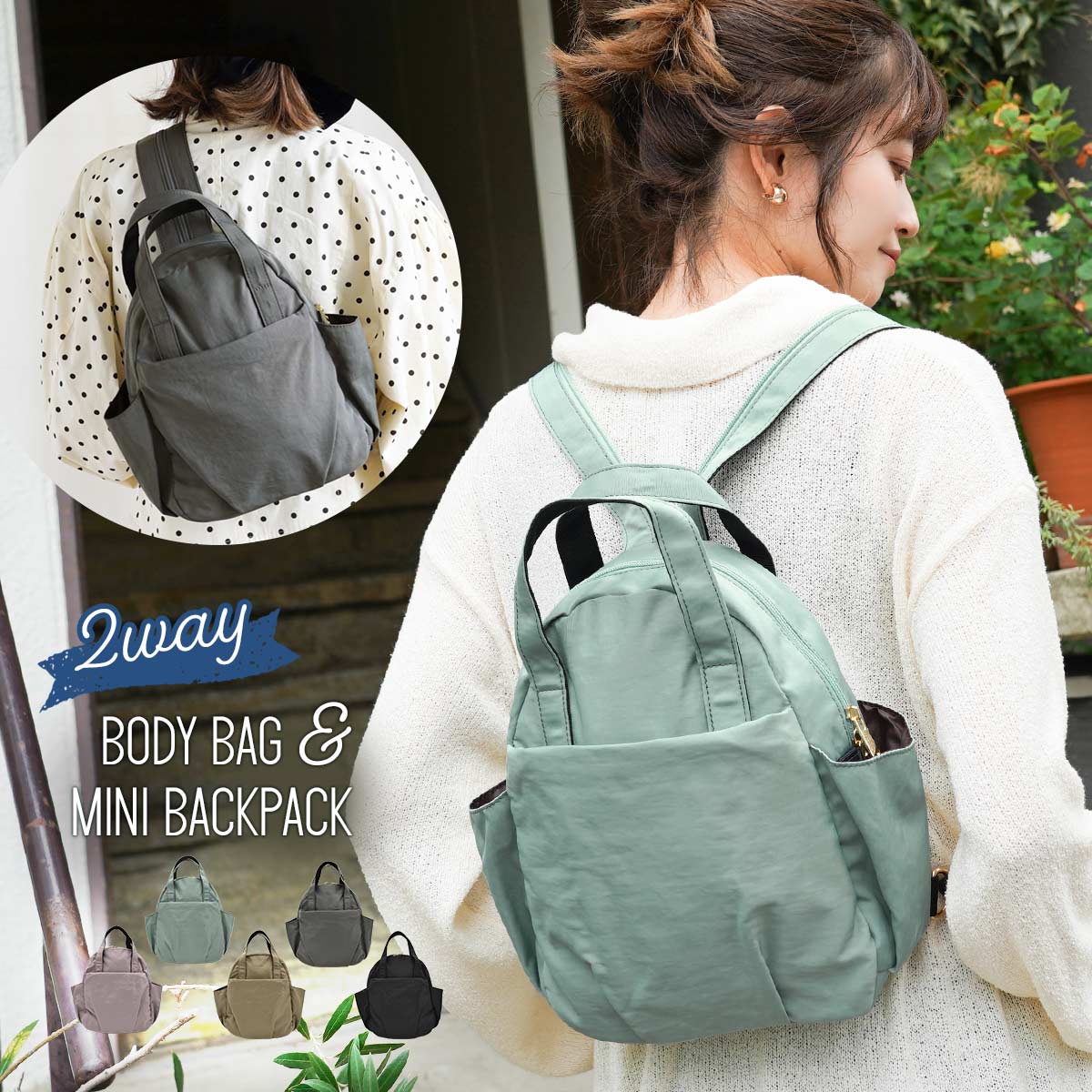 【関連カテゴリー】:リュック レディース 軽量 ミニ 2way ボディバッグ ナイロン A5 撥水 斜め掛け トートバッグ おしゃれ 通勤 旅行 お出かけ カジュアル 黒 プロペラヘッズ 送料無料「ファスナーひとつで2way変身!軽量270gのしわ加工ミニリュック」 メーカー希望小売価格はメーカー商品タグに基づいて掲載しています ↑クリックで拡大 ■当店おすすめのご利用シーン・イベント■ 下記ご利用イベントやシーンなどでご使用することがおすすめです。 ※一部シーンやイベントなどはご使用頂けない場合がございます。 予めご了承くださいませ。 GOTOトラベル GOTOフェス 誕生日 お誕生日 シルバーウィーク ゴールデンウィーク 旅行 海外旅行 母の日 衣替え 夏休み 花火大会 盆踊り 夏祭り 秋物入荷 防災 春物入荷 お花見 入学式 敬老の日 ハロウィン 運動会 文化祭 学園祭 お歳暮 冬物入荷 クリスマス プレゼント お正月 父の日 梅雨 夏物入荷 山開き 海開き 七夕 お中元 お祝い 内祝い 出産祝い 引っ越し祝い 引越し祝い 暑中お見舞い 初売り 初詣 お年玉 成人の日 新生活 引越祝い ボーナス祝い 七五三祝い 退職祝い 還暦祝い 長寿祝い 大掃除 新築祝い 成人祝い 卒業祝い 就職祝い 合格祝い 入園祝い 成人式 節分 バレンタインデー 桃の節句(ひなまつり) ホワイトデー贈物 贈り物 ギフト お返し 引っ越し祝い 入学祝い 進学祝い 結婚祝い 婚約祝い 退院祝い "miman"商品名 【propellerheads】しわナイロン2WAYミニリュック&ボディバッグ スタッフコメント しわ加工ナイロンを使用した2WAYミニリュック&ボディバッグ。 ショルダーはファスナーで分割でき、スタイルや気分に合わせて ボディバッグ・リュックサックとしても使える便利な2way仕様が魅力です。 コンパクトサイズですがサイドのポケットはマチ付きでペットボトル等の収納が可能! 手提げハンドルもついているので、使い勝手も良いアイテムです。 ・ショルダーはファスナーで分割でき、ボディバッグ・リュックサックとしても使える便利な2way仕様! ・前面にA6サイズが入るファスナーポケットが1つ。パッと取り出したい物の収納に便利です。 ・サイドのポケットはマチ付きなのでペットボトルやスマホなどの収納が可能です。片側のポケットの内側にパスケースなどを取り付けできるDカン付き! ・トートバッグとして使用時は背面のポケットにショルダーを収納可能。すっきりと便利にお使い頂けます。リュックやボディバッグ時にはオープンポケットとして使用可能!A5サイズが収納できます。 ・内側にファスナーポケットが1つ。メイン収納にはA5サイズや長財布、500mlペットボトルなどおでかけに必要最低限の物が入ります。少ない荷物でのおでかけや旅行などにもオススメです。 ブランド名 propellerheads 素材 ナイロン サイズ(約) W21×H26×D8(cm) ショルダー長さ(調節可能)72〜90/幅6(cm) その他スペック 【本体重さ】約270g 【開閉】ファスナー 【ポケット】 外側:ファスナーポケット×1 オープンポケット×3(内側にDカン付き) 内側:ファスナーポケット×1 【生産国】中国 カラバリ ライトパープル ライトグリーン ベージュ グレー ブラック 関連商品 ■当店の ボディバッグ ・ リュックサック はコチラから ご注意 ・生地や個体差でサイズと重さが若干異なる場合ございます。 ・色目に関してはご覧頂いているディスプレイやスマートフォンの画面により、画像と実物の差がある場合がございますが予めご了承ください。 ・素材の特性上、雨・汗・水などの水分や摩擦などにより、本品から他のものへの色移りが発生することがございます。現在の技術では避けられない現象ですのであらかじめご了承ください。 ・ベンジンやシンナーなどの揮発性溶剤の使用は絶対におやめください。 ・ハンドルやショルダー部分を強く引っ張ったり、極端に重いものを入れての使用は破損の原因となりますのでおやめください。パソコン等の精密機器を入れる場合は専用の保護バッグを使用した上で、本品においれください。本品自体はそれらを保護する仕様では生産されておりません。 ・本来の目的外での使用は予期せぬ事故や怪我につながる恐れがございます。 ・生地表面同士や他の素材と密着させておくと色落ちや剥がれが発生することがあります。 ・麻やコットン等の天然素材は色プレ等の個体差が発生したりネップと呼ばれる系の節が表面に見られることがありますが、素材の風合いとしてお楽しみください。また濃色は色移りしやすくなっております。 ・研磨剤の使用はおやめください。 ・洗濯やクリーニングはおやめください。汚れた場合は乾いた白い布で軽く拭き取ってください。 ・保管の際は直射日光の当たらない涼しい場所で保管してください。湿気はカビや金具のサビの原因となりますのでご注意ください。