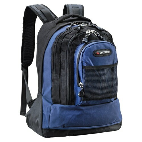 ●サイズ:高さ47×横幅29×厚み16(cm)。●対応サイズ:B4サイズ(36.4cm×25.7cm)。●重量:約650g。●容量:約20リットル。●素材:840Dポリエスター、メッシュ(背面)。●カラー:紺。●生産国:中国。●正面:ファスナーアウトポケット×3。●正面ファスナーアウトポケット(左右)内部:ネットポケット。●片側面:小物ポケット。●本体内部:ファスナーポケット、小物ポケット×4、ペン差し。●Y付内部:ウレタン内装アテポケット。●チェストハーネス。 ●3つの大きなポケットが特徴的なリュック。●各ポケットにはそれぞれ小物ポケットが付いており、収納に便利な仕様に。●Y付内部のポケットにはウレタン内装、タブレット等の収納も可能です。●背面は、長時間背負ってもムレにくいメッシュ素材を使用。●チェストハーネスは、リュックが肩からずれるのを防ぎます。●自転車やバイクでの通勤・通学、旅行やアウトドアまで幅広く大活躍です。 ●商品のデザイン・仕様は予告なく変更する場合がありますのでご了承ください。