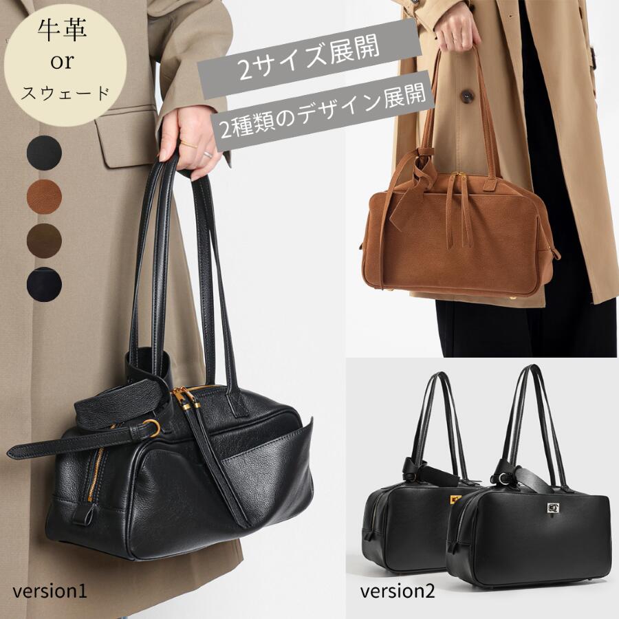 [型番:15305021]【デザイン】良質感のある床革素材のボストンバッグ。表面はスムース、内側マチはシュリンク型押しの異素材MIXで、開けたときも品よく見える仕立て。ハンドル根元の小さなメタル金具と、本体の切り替えラインが上品なアクセント。端正なボストンフォルムでセレモニーにも映えます。取り外しできるショルダーストラップ付きなので、手持ちと肩掛けの2WAYでシーンに合わせた持ち替えが可能。前後銅裏側にはポケットを配し、スマホや鍵など小物の整理がスムーズ。見た目はすっきり、機能はしっかり。カラーは、ブラック/ライトピンク/グレージュの3色展開。ブラックは端正に、ライトピンクは華やかに、グレージュは柔らかく上品な印象です。【スタイリング】セレモニーにおすすめ。ツイードジャケットやセットアップ、ワンピースに合わせるだけで「きちんと感」と女性らしさを両立。ブラック:ネイビーやモノトーンの式典コーデを引き締め、写真映えも◎。ライトピンク:ベージュやグレーの装いにやさしい差し色をプラス。春行事にも好相性。グレージュ:淡色コーデと馴染み、上品で落ち着いた印象に。普段使いへの移行もスムーズ。食事会や通勤にも対応する汎用性です。【仕様】・ポケット数:内側×2※照明の関係により、実際よりも色味が違って見える場合があります。また、パソコン・スマートフォンなどの環境により、若干製品と画像のカラーが異なる場合もございます。重量:約580g(サンプルサイズ)■カラー:3色展開FREE:高さ:17cm 幅(上部):22cm 幅(下部):25cm マチ:10cm 持ち手上がり:9cm 付属ショルダー対応サイズ:83〜98cm※( )で表記されている数字はヌードサイズです。ヌードサイズとは衣服を身につけない身体のサイズです。お客様ご自身の身体サイズと比較してお選びください。 ■素材: 床革 ■お手入: >>商品のお取り扱い方法 ■原産国: 中国製スプリットレザーラウンドボストンバッグ/アンタイトル(UNTITLED)ブラック(019)ベージュ(052)ピンク(072)画面上と実物では、多少色具合が異なって見える場合がございます。