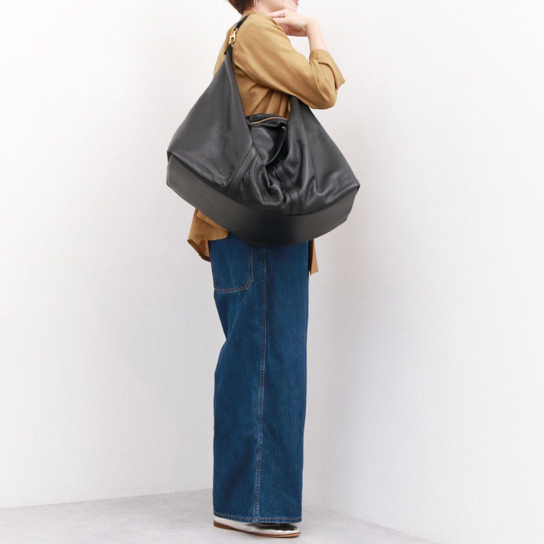 [型番:80-00-00097]ペルケ perche / ガーメントレザー・サスティナブル2wayハーフムーンボストンM■デザイン&ポイント【REDUCE】サスティナブルを意識した商品への取り組みサスティナブルとは、「持続可能な」という意味。地球の自然環境に役立つ事や、自然環境に配慮した行動を表現する際に聞くようになった言葉です。この商品は、サスティナブルを意識し、バッグや小物で使用されていない部位の革を利用している為、ecoで【Reduce】リデュースな商品です。吸い付くようになめらかな手触りが心地よいソフトな衣料革を使った2wayハーフムーンボストン。革本来の傷などをそのまま裁断することで無駄を生み出さないサスティナブルなバッグに仕立てました。長財布や500mlボトル、ポーチなどがしっかり入り女性でも持ちやすいサイズ感です。オールレザーで大人カジュアルに合わせやすいユニセックスでお使い頂けるショルダーバッグです。■アテンション・こちらの商品は本革を使用しております。本革の特性上水濡れ(雨、汗など)や摩擦で色落ちします。淡色のお洋服との組み合わせはお控えください。また、染色の際に使用する染料のにおいが残る場合がございます。気になる場合は一度陰干しをされた上でご使用ください。■カラー:ブラック▼商品詳細▼【サイズ】横:33 高さ:20 マチ:14 ハンドル立ち上がり:12 ショルダー:93-135【ポケット】外:0 内:3【口元開閉方法】ファスナー【重量(g)】520【素材】牛革【原産国】日本製A4用紙:×長財布(10cm×20cm):○500mlボトル:○※( )で表記されている数字はヌードサイズです。ヌードサイズとは衣服を身につけない身体のサイズです。お客様ご自身の身体サイズと比較してお選びください。 ■素材: 牛革 ■お手入: >>商品のお取り扱い方法 ■原産国: 日本製ペルケ perche / ガーメントレザー・サスティナブル2wayハーフムーンボストンM/ペルケ(perche')ブラック画面上と実物では、多少色具合が異なって見える場合がございます。