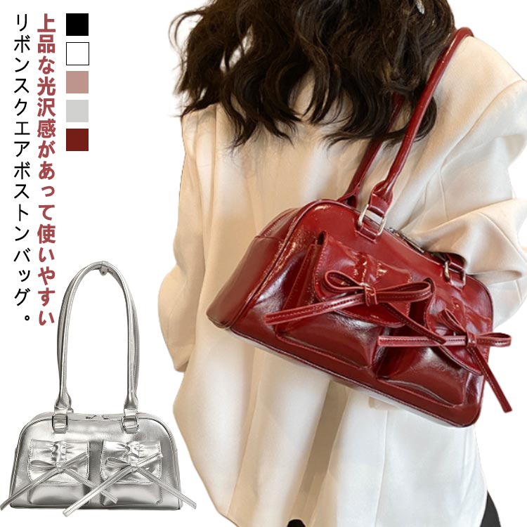 上品な光沢感があって使いやすいリボンスクエアボストンバッグ。シンプルなデザインの中にアクセントのリボンがワンポイント♪コンパクトなサイズ感ながら、必要なアイテムをしっかり収納できます。トレンドの横長シルエットで荷物が入れやすく、スマートフォン、財布、鍵、化粧品などの必需品を持ち運ぶのに最適です。バッグ単体で自立するので、サッと手に取ってお出かけしやすいのも魅力の1つです。オンオフ兼用なので、通勤通学バッグ、サブバッグ、お出かけバッグなど幅広いシーンでお使いいただけます。サイズミニボストンバッグサイズについての説明たて17cm よこ30cm マチ10cm サイズ表の実寸法は商品によって1-3cm程度の誤差がある場合がございます。素材PUレザー色ブラック ホワイト ピンク シルバー レッド備考サイズ詳細等の測り方はスタッフ間で統一、徹底はしておりますが、実寸は商品によって若干の誤差(1cm〜3cm )がある場合がございますので、予めご了承ください。製造ロットにより、細部形状の違いや、同色でも色味に多少の誤差が生じます。パッケージは改良のため予告なく仕様を変更する場合があります。▼商品の色は、撮影時の光や、お客様のモニターの色具合などにより、実際の商品と異なる場合がございます。あらかじめ、ご了承ください。▼生地の特性上、やや匂いが強く感じられるものもございます。数日のご使用や陰干しなどで気になる匂いはほとんど感じられなくなります。▼同じ商品でも生産時期により形やサイズ、カラーに多少の誤差が生じる場合もございます。▼他店舗でも在庫を共有して販売をしている為、受注後欠品となる場合もございます。予め、ご了承お願い申し上げます。▼出荷前に全て検品を行っておりますが、万が一商品に不具合があった場合は、お問い合わせフォームまたはメールよりご連絡頂けます様お願い申し上げます。速やかに対応致しますのでご安心ください。