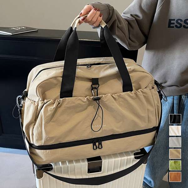 ボストンバッグユニセックストラベルバッグスポーツバッグ軽量 旅行バッグ修学旅行 ジムバッグおしゃれジムやフィットネス、2〜3泊程度の旅行など、荷物多めの日に重宝する大容量タイプのボストンバッグ。ドライウェット分離機能付きで整理しやすく、荷物をすっきり収納。下部にシューズ収納スペースを備え、衣類と分けて収納できる。スーツケースのハンドルに通せる背面ポケット付きで、移動中もずれにくく安心。ハンドルとショルダーストラップ付きの2WAY仕様で、持ち運び方を選べる。素材:ナイロン+ポリエステルカラー:ブラック/アイボリー/ライトグレー/ベージュ/グリーン/テラコッタサイズ:ワンサイズ高さ:約31cm 上横幅:約49cm 底横幅:約46cm マチ:約20cm 持ち手高さ:約28cm 持ち手長さ:約63cm(調節不可、取り外し不可) ショルダー:約46-86cm(調節可、取り外し可)■収納について ・A4対応(22×31cm):〇・iPadmini対応(19.6×13.5×0.7cm):〇・長財布(10×20cm):〇・二つ折り財布:〇・キーケース:〇・ペットボトル横向き(500ml):〇・ペットボトル縦向き(500ml):〇重さ:約535g裏地:あり内ポケット:あり生産国:中国※すべて平置きサイズです(採寸方法違いより、多少の誤差がございますので、ご了承ください)。※海外輸入品のため、商品の細部仕様は多少異なる場合がございます。予めご了承の上、ご注文お願い致します。商品管理番号:6ZMIN-013返品・交換について購入後の交換は受け付けておりません。予めご了承ください。返品を希望される場合は購入履歴一覧の「ショップへの問い合わせ」よりお問い合わせください。=========================複数配送先指定について1件の注文に対して、異なる住所への配送は対応出来かねます。恐れ入りますが、異なる住所へ配送をご希望の場合、配送先毎に分けて注文いただきますようお願い申し上げます。【バッグ・鞄WOMEN】ベージュ ブラック テラコッタ グリーン アイボリー ライトグレー ワンサイズ 素材:ナイロン+ポリエステルベージュ ブラック テラコッタ グリーン アイボリー ライトグレー
