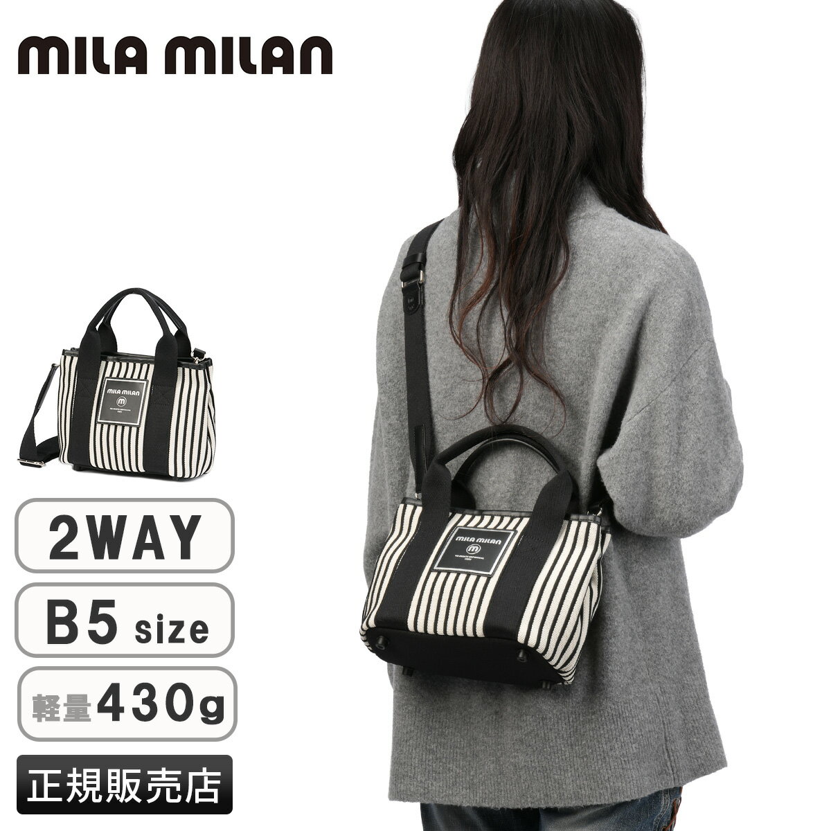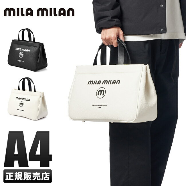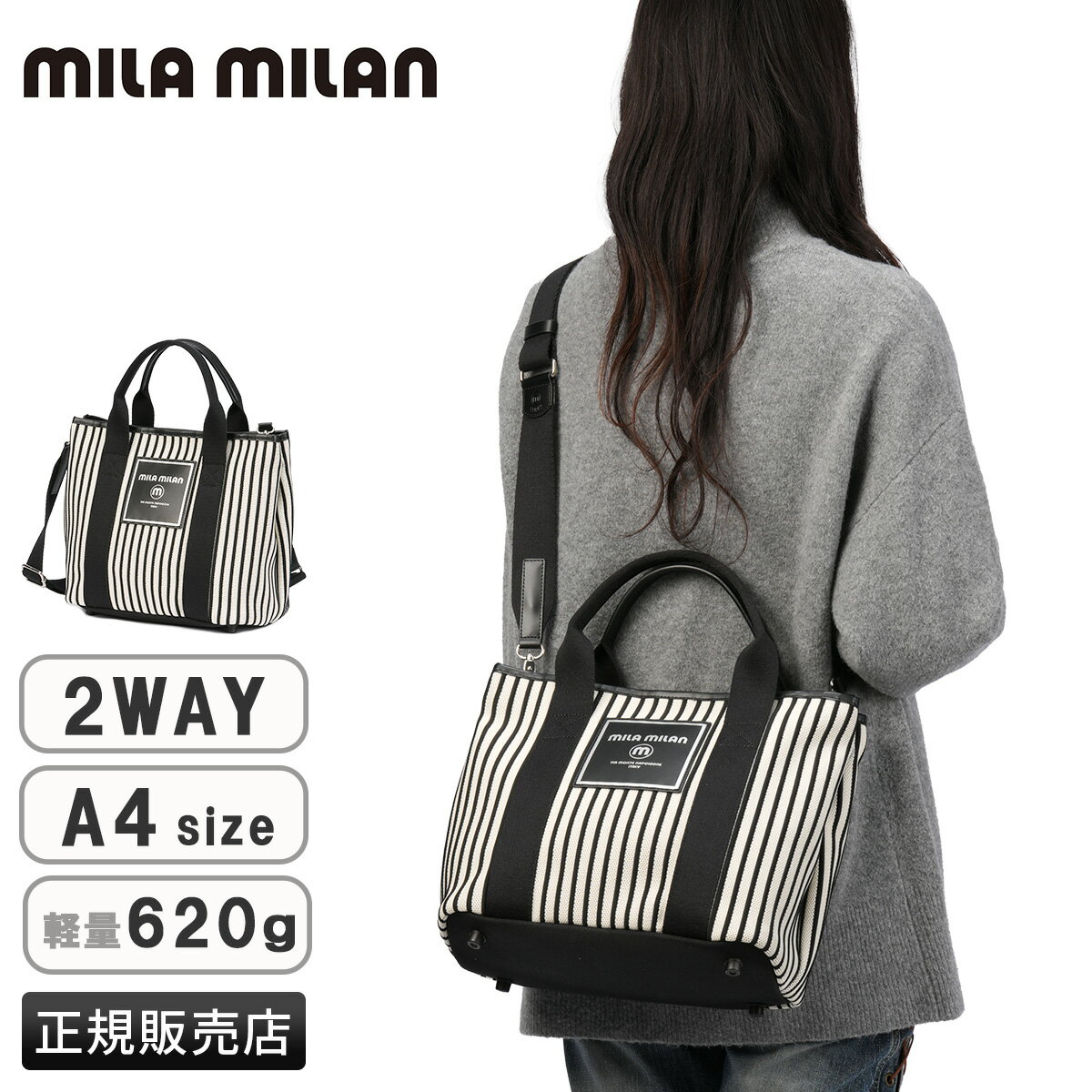 mila milan -ミラ・ミラン-2022年春ブランドデビュー。マダム・ミラ・ショーンは、大好きな芸術家の作品からインスピレーションを受け、ファッションのデザインへ落とし込んでいました。その感性を大切に、タウンゴルフをテーマとした、カジュアルでモードなアイテムを展開します。ブランドページ>> ■ミラ・ミラン mila milan / コルソ Corso / ミニトート スクエアトート 2WAY 【250501】モノトーン調にブランドロゴがポイントのミラ・ミランのカジュアルミニトートバッグ。シンプルデザインなので男性はもちろん、女性にもお持ちいただけるバッグです。普段使いはもちろん、ゴルフや旅行等様々なシーンでお楽しみいただけます。お友達同士や、カップル・ご夫婦などでお揃いにするのもおすすめです。【雨の日も安心の素材】本体生地は防水機能のあるPVCを採用。雨の日も安心してお使いいただけます。一見シンプルなトートに見えますが、内装には全面ストライプ&ブランドロゴのサプライズ。ストライプ生地を使用しているように見えて、実はプリントを施した1枚生地仕立てとなっております。【ペットボトルが入るサイズ感】メインルームには500mlペットボトルが横向きに入ります。気軽に持ち出しやすいサイズ感です。そして内装に小物用のオープンポケットが2つと、背面にファスナーポケットが搭載し、すぐに取り出しやすいアイテムの収納に便利です。貴重品や水筒、除菌アルコールスプレー、ハンカチ、スマホ等、コンパクトサイズながらたっぷりと収納可能です。【2WAY仕様】サイドボタンを閉じたスタイルはバッグがコンパクトな印象に。そしてボタンを開けるとスクエアトートになる2WAY仕様です。スクエアにすると荷物もより沢山入ります。本体生地に、防水機能のあるPVCを採用。雨の日も安心して使えます。スペックブランド |ミラ・ミラン / mila milanシリーズ |コルソ / Corso品番 |250501形状 |ミニトート / スクエアトート 2WAY外寸 |W300×H220×D90[mm]持ち手 |立ち上がり 125[mm]重量 |約 550g収納サイズ |B5用紙素材 |PVC(ポリ塩化ビニル)/ 床革 |内装:コットン(内ポケット)お取り扱いの注意内装にはストライプテープ柄のプリントを施しています。色移行を防ぐため、保管の際は中の物を出していただきます様、お願いいたします。 【コルソシリーズでそろえて、統一感あるコーディネート】 例えばゴルフや旅行等で、ミニトート(品番 250501)にはすぐに取り出しやすい貴重品などを収納し、トート(品番 250502)、やショルダー付きトート(品番 250503)に1泊用の荷物を収納してお持ちいただくと、まとまりのある印象に。 「トートバッグ」一覧 > 「ミラ・ミラン」一覧 >
