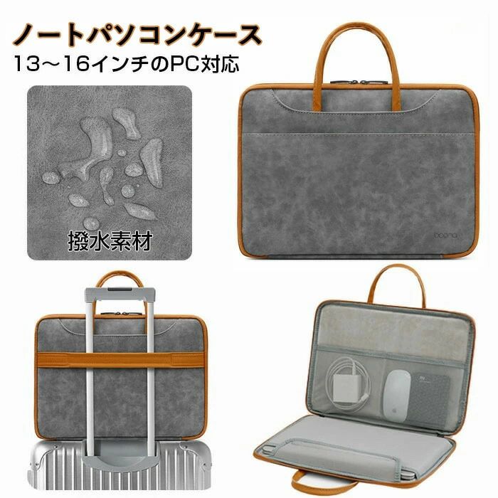【大容量の収納スペース】バッグの前後にポケット付き。フロント収納部は、複数の小分けポケットとマグネット開閉式で、小さな工具や身の回りのものをすぐに取り出せるように設計されています。背面収納部には、スマートフォンやタブレット端末、書類などの身の回りのものを収納することもできます。【全面保護】メイン収納部、左右の側面と下部に超強力なアンチコリジョンフォームを敷き詰めているので、エアバッグのように保護することができるのです。ノートパソコンを収納するメインコンパートメントの裏地には、ソフトで上質なフリース素材を使用し、ノートパソコンを傷から保護します。【上質素材の使用】質感の高い高級PUフェイクレザーとマイクロファイバー素材(ハンドル部分)を採用することで、優れた触感を実現していることも特筆されます。また、表面に防水コーティングを施し、風雨から身を守ります。【便利な旅行】背面に固定用の帯を付き(マイクロファイバー製)。通勤、出張、旅行には、背面の固定ストラップでスーツケースに簡単に取り付けられ、荷物が軽くなる。 メーカー希望小売価格はメーカーカタログに基づいて掲載しています