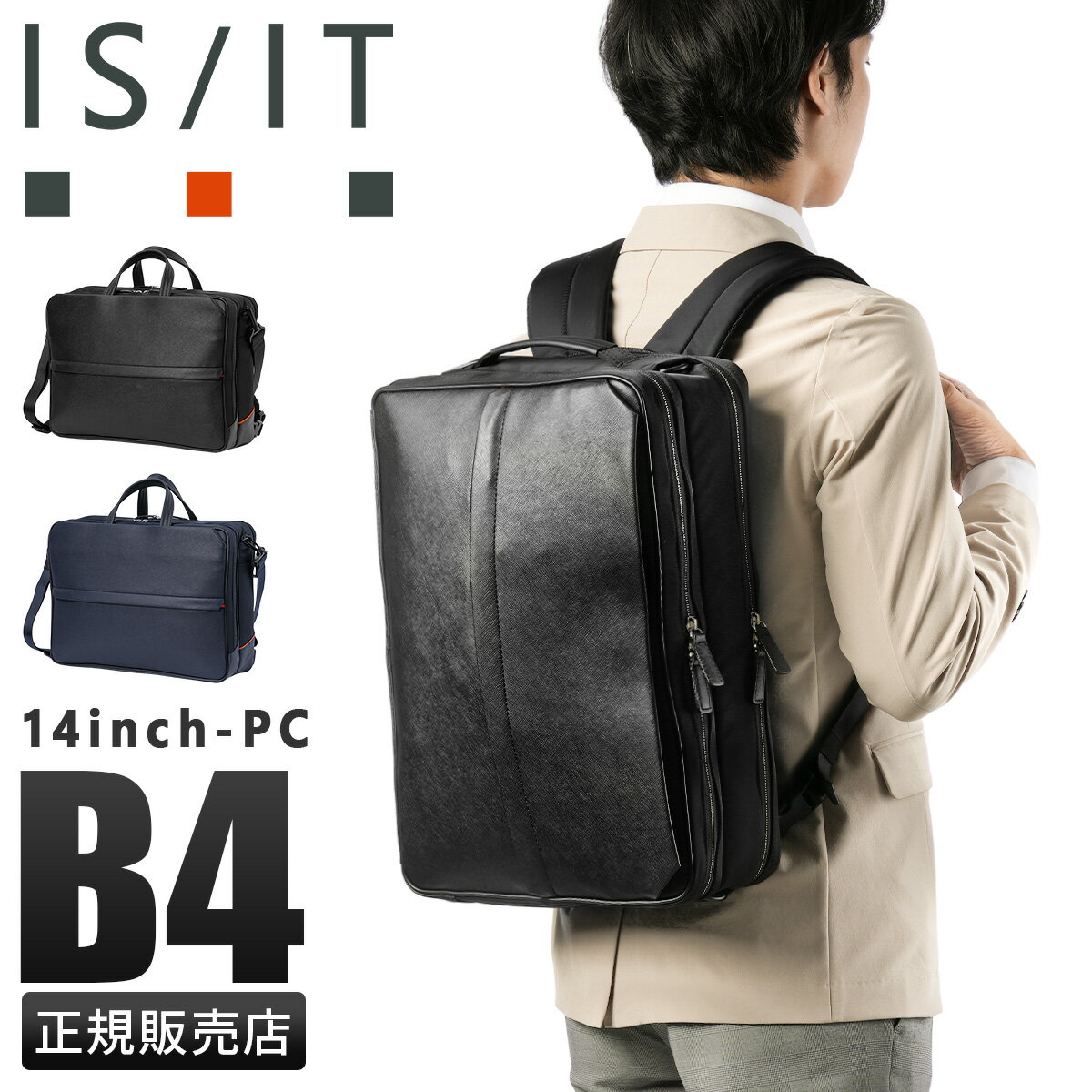 ISIT -イズイット- IS=YES、良い、正しい。IT= 物、存在、出来事。 ISIT=それは正しい「物」の選択。 THIS IS IT!! 「これです!」求めてた物は「まさにこれ!」探してた物は、 「さあ、いよいよ」これを身につけ「これはチャンス!」これから始まる、新しい世界に旅立とう。 ブランドページ>> ■ISIT イズイット / サフィールII / 3WAYビジネスバッグ A4 14インチPC収納 ブリーフケース 1気室【937513】 異素材コンビ3WAYビジネスバッグ 前面にはサフィアーノ型合成皮革を、ハンドルには手に馴染む牛革を、そしてマチと背面にはナイロンを使用した異素材コンビでスッキリとしたデザインのA4サイズの3WAYビジネスバッグ。シーンに合わせて、リュックやショルダーとしてもお使いいただけます。 抜群の「収納機能」 豊富な収納ポケットで、ビジネスに必要なあらゆる荷物の持ち運びが可能です。A4ファイルがすっぽりと収まるメインルーム内には、14インチPC収納対応ポケットと、ファスナーポケットが1つ、大小のポケットが1つずつ装備されています。ガジェット類など細かな荷物を整理して収納が可能です。 また、ビジネスバッグの前面にはアオリポケットがあり、新聞やサッと取り出したい小物の収納に便利です。フロントのファスナーポケットは浅型に設計しており、さらに内側は見やすいオレンジ色のパイル生地を使用することで、スマートフォン等を入れても画面を傷つける心配がありません。 収納力だけじゃない機能 カバンの背側ファスナー内には、リュック紐が収納されています。バックルに装着してリュックスタイルとしても活躍します。マチ部分はマジックテープで開閉できるため、リュックとしてカバンを縦型に使うときもカバンの上部から荷物を出し入れすることができます。 バックル部分は普段使いする際は見えないように収まります。また、手持ちハンドルも前後の収納スペースに完全に入れておくことができるため、リュックを背負っている時や、カバンを斜め掛けにする時にも邪魔になりません。 背側にはセットアップ機能付きなので出張にも便利です。 スペック ブランド |ISIT - イズイット シリーズ |サフィール2 品番 |937513 形状 |3WAYビジネスバッグ |ブリーフケース 1気室 外寸 |W400×H290×D80[mm] 持ち手 |立ち上がり:80[mm] 重量 |本体:約 1,200g |ショルダーベルト:約 90g 収納サイズ |A4ファイル |14inchノートPC 主素材 |合成皮革 / ナイロン / 一部牛革 生産国 |中国 付属 |ショルダーベルト×1 | 長さ:780?1330[mm] | 幅:40[mm] 仕様 |リュックベルト | 長さ:540?940[mm] | 幅:70[mm] 収納機能 |[外側] |・前側 アオリポケット |・前側 ファスナーポケット |・背側 セットアップベルト |[内側] |・ファスナーポケット |・オープンポケット 大×1 / 小×1 |・14インチPC収納対応ポケット | (W340×H230[mm]) ATTENTION ●サイズはメーカー公称値(許容される最小値と最大値の中心値)です。 ▼ 関連商品を探す ▼ ブランド: ISIT > シリーズ: サフィール2 > アイテム: ビジネスバッグ > アイテム: イズイット ビジネスバッグ >