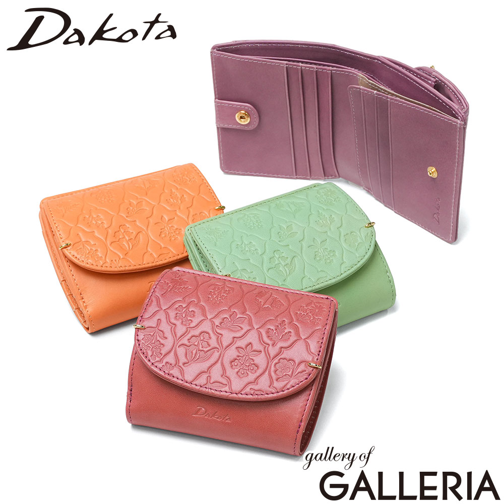 ダコタ 二つ折り財布 Dakota レディース 二つ折り 2つ折り ブランド かわいい 本革 革 レザー 小さめ コンパクト ミニ ミニ財布 財布 小銭入れ box型小銭入れ 大人 シンプル おしゃれ ロゴ バンビーナ2 バンビーナ ミニウォレット ウォレット 折り財布 革財布 小銭 BOX型小銭入れ ボックス型小銭入れ BOX型 ボックス型 小銭入れ付き 小銭入れあり スナップボタン カード カード収納 カード入れ 札入れ 牛革 イタリアンレザー 使いやすい 機能的 旅行 観光 トラベル デイリー 上品 ギフト 贈り物 プレゼント 30代 40代 50代 女性 コンパクトウォレット 小さい きれいめ 可愛い 大人可愛い 花 型押し イタリア製牛革 ピンク オレンジ ブルー ブラウン 艶 カラー コンパクト財布 短財布 オシャレ 誕生日 オールシーズン 無地 0030834ビビットカラーが映える可愛いミニウォレット艶やかなイタリアンレザーで仕立てた『バンビーナ2』シリーズの二つ折り財布。お花の型押しがシンプルなデザインの中でもポイントになっています。コンパクトなスクエアフォルムは収納力抜群で、日常使いはもちろん旅行シーンにも活躍。上品な艶のあるカラーが魅力で、小さめバッグのお出かけやキャッシュレス派にもぴったりのアイテムです。 COLORS LOOK サイズ (約)<本体>W10×H9.5×D3(cm)※サイズ・重量は当店計測値となります。 商品により、若干の個体差が生じます。※当店のサイズ計測方法はこちら 素材<表地>イタリア製牛革 重量 (約)90g カラーピンク(32)、オレンジ(34)、ブルー(65)、ブラウン(40) 原産国中国 仕様<外側>ポケット×1<内側>札入れ×1小銭入れ×1カードポケット×8<付属品>収納箱×1 備考欄<商品のモデルチェンジについて>【2025年10月〜】・本体の素材変更 <購入前にご確認ください>・メーカーの意向により、付属品の収納袋や箱、製品の仕様やデザインは予告なく変更となる場合がございます。・商品をご使用する前に、「取り扱い上の注意」「洗濯表示」等を必ずご確認ください。・天然皮革や天然素材を使用した製品は、素材本来の風合いとしてキズや色ムラ、シワ、色の濃淡、素材の割れ、けば立ち、形の歪みなど、一点一点違いが見られる場合がございます。商品の特性としてご理解の上、お楽しみください。※皮革の特性について購入前に必ずご確認ください・防水機能がある製品は、完全防水ではないため、縫製部分である針穴からなどの水の侵入は防ぐことはできませんのでご注意ください。・摩擦・水濡れ・日焼けなどにより、色落ち・色褪せが生じる場合があります。 また、製品と衣類の接触により、相互に色移りする場合がございます。・柄の位置やカラーバランスなどは、生地の裁断や製造過程、素材の特性により画像とは異なる場合がございます。商品をお選びすることはできませんので、予めご了承ください。・ダブルジップファスナーの商品につきましては、ファスナーの構造上、順目、逆目が存在しており、片方(逆目)に多少の引っ掛かりを感じることがございます。ダブルファスナーの特性上、不良品ではございませんので、予めご了承ください。・極力実物に近い色味を再現しておりますが、モニター等の条件により画面上と実物では色味が異なって見える場合がございます。 もっと探す レディース二つ折り財布(レザー)一覧にアクセス Dakota 財布・小物シリーズ一覧にアクセス アイテムリスト一覧にアクセス ブランドリスト一覧にアクセス