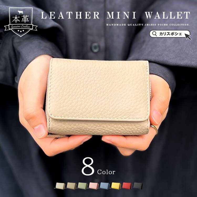 シュリンクレザー 3つ折り ミニレザーウォレット [ab-lw042] 表面のシボとマットな質感が特徴の高品質なシュリンクレザーを使用して製作した3つ折り財布です。お札、小銭、カードと一通りの物が収納することができます。小銭入れは外側にあるので独立して開閉することができ、ちょっとしたときに便利です。スキミング防止機能が付いているのでカード類にも安心です。シュリンクレザーは汚れに強くて耐久性があるメンテナンスフリーの本革素材です。 【スペック】 横:約10.5cm 縦:約7.5cm 厚さ:約4cm 重さ:約82グラム カラー:ブラック ブルー グリーン グレージュ アイボリー ピンク レッド イエロー ※イエローカラーは屋内や蛍光灯下で淡い黄緑に見える場合がございます。画像の写真は明るい陽光での撮影となります。ご了承ください ※天然素材を使用しておりますので、革本来のキズや痕、シワなどがある場合がございますが、使用していくうちに馴染んで目立たなくなっていきます。革の個性としてお楽しみください。 ※掲載画像はできる限り加工等はせずにそのままの状態の写真を使用しておりますが、撮影環境、光の当たり具合やモニターによって若干色合いのイメージが異なることがございますのでご了承ください。 ※サイズは外寸となります。素材や商品の形状によっては計測位置によって誤差が生じます。 【ご利用シーン】 財布 小さい 小さめ ミニ コンパクト 小銭入れ コインケース コインポーチ ポケット 手軽 手ぶら 身軽 コンパクト 小さいバッグ メンズ レディース 革 本革 牛革 レザー ギフト プレゼント 父の日 母の日 軽い 軽量 男の子 女の子 シンプル かわいい 可愛い おしゃれ 柔らかい カラフル パステルカラー ギフト ラッピング ブランド 誕生日 クリスマス 就職 昇進 退職 入学 記念日 男性 女性 彼氏 彼女 ビジネス ネーム プレゼント カジュアル フォーマル 通勤 通学 買い物 ショッピング ナチュラルレザー レザークラフト カウレザー 誕生日 母の日 父の日 敬老の日 クリスマス バースデー ホワイトデー