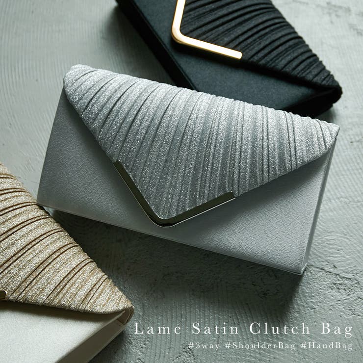 ラメプリーツが煌めく、スクエア型のクラッチバッグ。V字のプレートも華やかなポイントに。長財布も入る大きめのサイズ感なので、荷物の少ない方ならこれひとつでお出かけOK。簡単に取り外し可能な50cm/120cmのチェーン2本付きでクラッチ・ハンド・ショルダーの便利な3way仕様。オススメシーン結婚式・二次会・披露宴・お呼ばれ・成人式・同窓会女子会・2次会・謝恩会・パーティー・デート・演奏会発表会など多様なシーンのコーディネートに使えます。【素材】ラメサテンプリーツ【生産国】中国【サイズデータ】(高さ)F:12cm(横幅)F:26cm(マチ)F:5cm【カラー展開】ブラック/ベージュ/シルバー【備考】・内ポケット×1・付属品:50cmチェーン/120cmチェーン【商品注意事項】※サイズはメーカー採寸になりますが、多少誤差が生じる場合がございます。※モデル画像は環境光の影響によりカラーが異なって見える場合がございます。平置きのカラー画像を御参考下さい。※商品画像はご覧になるモニターなどの環境によって若干の誤差があります。返品・交換について購入後の交換は受け付けておりません。予めご了承ください。返品を希望される場合は購入履歴一覧の「ショップへの問い合わせ」よりお問い合わせください。=========================複数配送先指定について1件の注文に対して、異なる住所への配送は対応出来かねます。恐れ入りますが、異なる住所へ配送をご希望の場合、配送先毎に分けて注文いただきますようお願い申し上げます。【バッグ・鞄WOMEN】ブラック ベージュ シルバー F ラメサテンプリーツブラック ベージュ シルバー