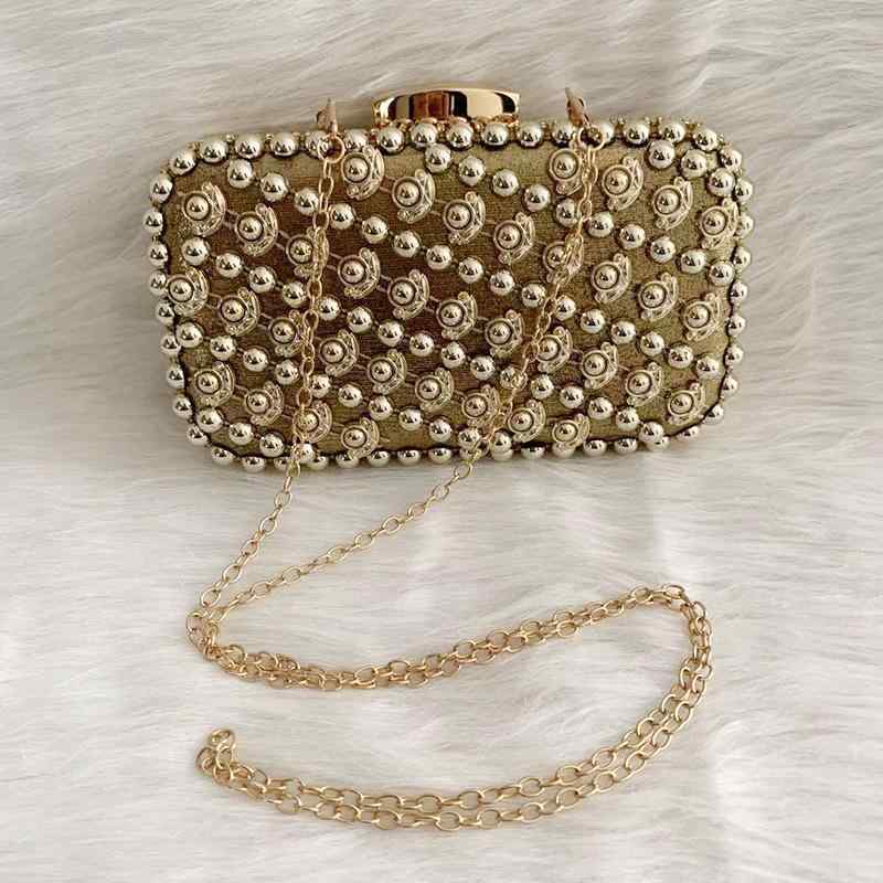 ・カテゴリ: パーティーバッグ・スタイル: 欧米風・素材: ポリエステル・内部構造: カード入れ、小銭入れ・形状: スクエア・装飾: ラインストーン・サイズ: ミディアム・開閉方式: クラスプ・ストラップ本数: 1本・硬さ: ハード・カラー展開: ゴールド