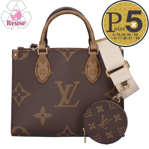 【リユース品】 ルイヴィトン LOUIS VUITTON バッグ 2WAYバッグ オンザゴーPM M46372 ブラウン系ルイヴィトンのバッグ商品ランク:A使用感の少ない綺麗なものRFIDタグ(ICチップ)内蔵サイズ約幅25cm×縦19cm×マチ12cmショルダーストラップ 約-115cm仕様開閉部分:フック式内側:オープンポケット×2、ファスナーポケット×1素材モノグラム・ジャイアントリバースキャンバスカラー ブラウン系付属品保存袋コインケースショルダーストラップ注意点・中古品になりますので商品状態など、写真をご確認の上ご入札下さい。・店頭併売のため、完売の際はご容赦ください。・色、素材感に注意して撮影していますが、カメラの特性、ご覧になられているスマートフォン、パソコンにより色見、質感が異なっている可能性がございます。※海外ブランド商品に関しては、予告なく仕様変更が行われる可能性があり、在庫が混在しております。仕様についてはお選びできかねますので、予めご了承の上、お買い求めください。※サイズはスタッフが手作業で計測しており、誤差が生じることがございます。※インターネット販売価格は、当社直営店舗の価格とは異なる場合がございます。ルイヴィトン アイテム一覧を見る ≫ルイヴィトン バッグ 一覧を見る ≫