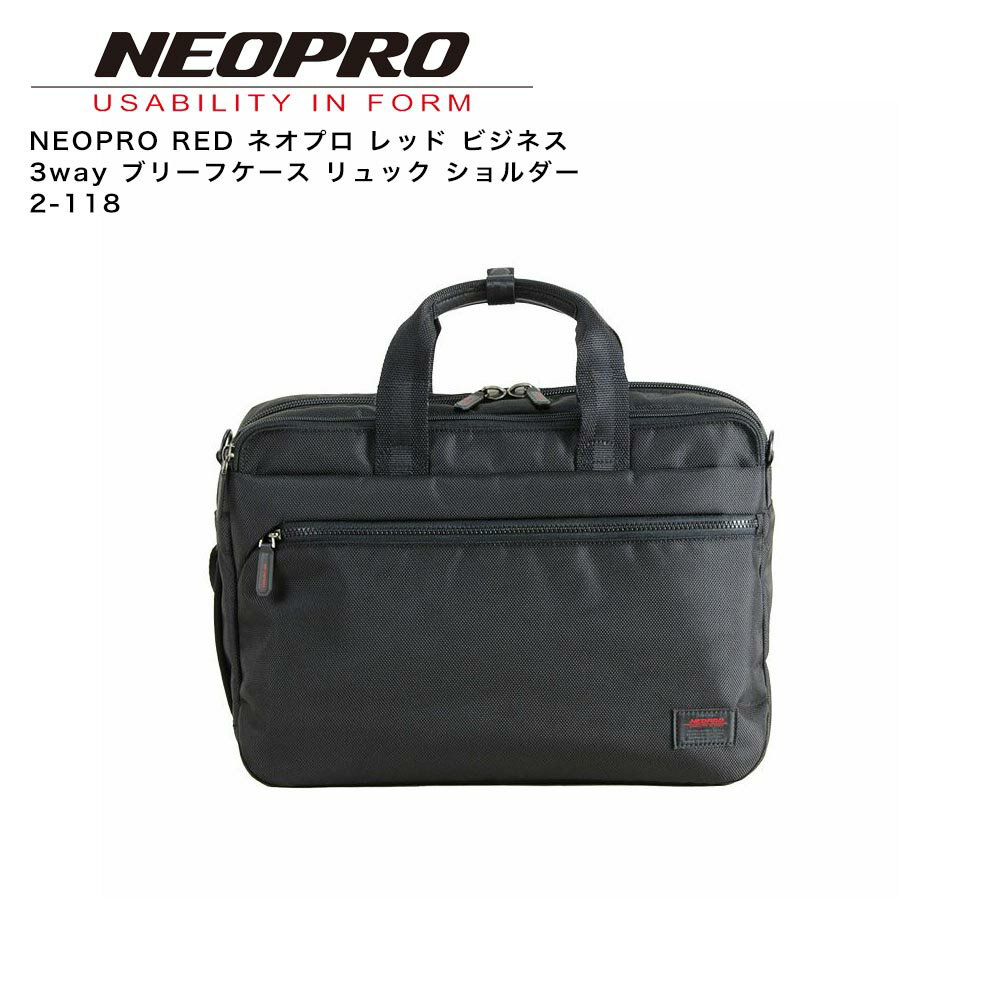 NEOPRO RED ネオプロ レッド ビジネス 3way ブリーフケース リュック ショルダーバッグ 2-118は、収納式リュックベルトを出せばリュックにもなる3way。「NEOPRO RED」の進化型。縦型に背負えるリュックベルト付きで、リュックベルトは背面ポケット内に収納できる。吊す際に便利なフッキングループ付き。フロントの造形は力強い印象のビスロンファスナーと斜めに切れ込んだ本体一体型のスライダートンネルが斬新。 ビジネススタイルに随所につかわれた赤いポイントが精悍さとタフさを表現している。斜めに折り込んだ本体一体型のトンネルに収まるファスナー引き手が特徴的なデザイン。汚れが拭き取り易いコーティング素材を底面に採用。背面の赤ステッチが強烈な印象を与える。タフに使えるビジネスギアです。PCとタブレットを収納。ビジネスバッグの究極。ハードな使用でも安心感がすごい!耐久性&強度を追求! 力の加わる各部分に補強ステッチを加えて耐久性UP。 ビジネスバッグを作り続けるメーカーならではのこだわり。ハンドル付根にストレス分散、ラウンドステッチ。Dカン付根に三角ステッチ。背面テープ付根に三角ステッチ。PC収納:横38cm×縦26cmタブレット収納:横26cm×縦19cmメインルーム:オープンポケット中(メッシュ)x2、PCポケット・タブレットポケット(クッション材入り)前面ルーム:オープンポケット小(メッシュ)、ファスナーポケット中(メッシュ)、ペン挿し、キーハーネス前面:フリーポケット側面:サイドハンドル背面:キャリーループエンドーかばん 遠藤鞄 えんどう鞄 バッグ 鞄 かばん ビジネスバッグ 通勤バッグ 通勤鞄 ブリーフ ショルダー バックパック ザック 無地 シンプル ビジネス 通勤 出張 営業 就活 メンズ 男性 人気NEOPRO ネオプロ をもっと見る >新着アイテム・ポイントアップ情報 [TOP] >掲載中の商品はメーカー発注商品を含んでおります。お申し込みの商品が、「生産未定、中止品、メーカー在庫切れ」等で入荷予定がない際にキャンセルとさせていただく場合もございます。あらかじめご了承ください。