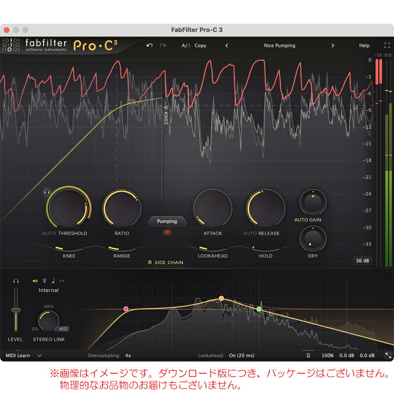 FabFilter Pro-C 3 ダウンロード版プロフェッショナルなコンプレッションを、すべての人に FabFilter Pro-C 3は、マスタリングからミキシングまであらゆる用途に対応するハイエンド・コンプレッサー・プラグインです。14種類のコンプレッション・アルゴリズムに加え、アナログ回路の特性を再現するキャラクター・モード、最大9.1.6chのイマーシブ・オーディオ対応など、現代の制作環境に求められる高度なダイナミクス処理機能を提供します。主な特長・[改善] 14種類の異なるコンプレッション・スタイル。うち6つはバージョン3の新機能:Versatile(多用途)、Smooth(スムーズ)、Vari-Mu、El-Op、Upward(アップワード)、TTM (To The Max)・[改善] 美しいRetinaインターフェース。(オプションの)アニメーション化されたレベル/ニー・ディスプレイと、正確なピーク/ラウドネス・メータリングを搭載・[NEW] キャラクター・モード:慎重に設計されたアナログ・サチュレーション、色付け、ドリフトがPro-C 3に命を吹き込みます。カスタマイズ可能なドライブ設定と、Pre/Post(前段/後段)ルーティング設定が可能・フルスクリーン・モード:大型のレベル・ディスプレイとサイドチェーンEQコントローラーを提供・[NEW] ホストテンポ・トリガーの導入:同期、オフセット、パルス長の設定が可能・[NEW] オート・スレッショルド:スレッショルド・ノブをレベルに依存しない挙動に変更可能(ダイアログ処理などに非常に便利)・[NEW] Pro-C 3インスタンスは、Pro-Q 4の「インスタンス・リスト」から、Pro-GやPro-DSと共にコントロール可能・[NEW] 完全なイマーシブ / Dolby Atmos機能(最大9.1.6ch)に対応し、カスタマイズ可能なチャンネル/ステレオ・リンク機能を搭載・ミックス設定:ゲイン変化を0%から200%までスケーリング可能・[改善] サイドチェーンEQセクション:ブリックウォールやオールパス・フィルターを含むあらゆるシェイプのEQを最大6バンド追加/削除可能。バンドごとにMidまたはSideのみのEQ処理も可能・[NEW] 新スタイルのプリセット・ブラウザ:検索、タグ付け、メタデータ編集が容易に・正確で大型のレベルおよびゲイン・チェンジ・メーター。ピークおよびラウドネス・レベルを可視化(EBU R128 / ITU-R 1770規格のモーメンタリ・モードに準拠)・[改善] 最大32倍のオーバーサンプリング・プログラム依存のアタックおよびリリース・カーブ・[改善] スムーズな先読み(ルックアヘッド):(オプション、最大20ms)。レイテンシーと必要な先読み量のバランスを微調整するため、最大値を0ms〜20msの間でカスタマイズ可能・macOSでのRetinaサポートおよびWindowsでのHigh DPIサポート・インテリジェント・オート・ゲイン・外部サイドチェーン・トリガー・ホールド機能(最大500ms)・GPUによるグラフィック・アクセラレーション・カスタム・ニー:ハード・ニーから72 dBのソフト・ニー(サチュレーションのような効果が可能)まで可変・オート・リリース・[改善] オプションのMIDIトリガー・超高速なアタック・タイム・一般的なPro Toolsハードウェア・コントロール・サーフェスをサポート・MIDIラーン機能・可変ステレオ・リンクおよびMid/Side処理(Midのみ、Sideのみ、Mid-to-Side、Side-to-Mid処理が可能)・レンジ設定:適用される最大ゲイン変化量を制限・アンドゥ/リドゥおよびA/B比較・オーディション・トリガー・オプション:Pro-C 3がオーディオのどの部分でトリガーし、どれだけのコンプレッションが行われているかを聴いて確認可能・スマート・パラメーター補間・[改善] 複数のインターフェース・サイズ:コンパクト、小、中、大・全パラメーターのサンプル精度のオートメーション・インタラクティブなヒントを含む広範なヘルプファイル・VST、VST3、Audio Units、CLAP、AAX Native、AudioSuiteフォーマットに対応(すべて64-bitおよび32-bit版あり)関連タグ:ファブフィルター WAVES SONNOX IZOTOPE ウェイブス ソノックス アイソトープ仕様詳細・対応動作要件は、本製品メーカーサイト情報をご参照の上、お買い求めください。