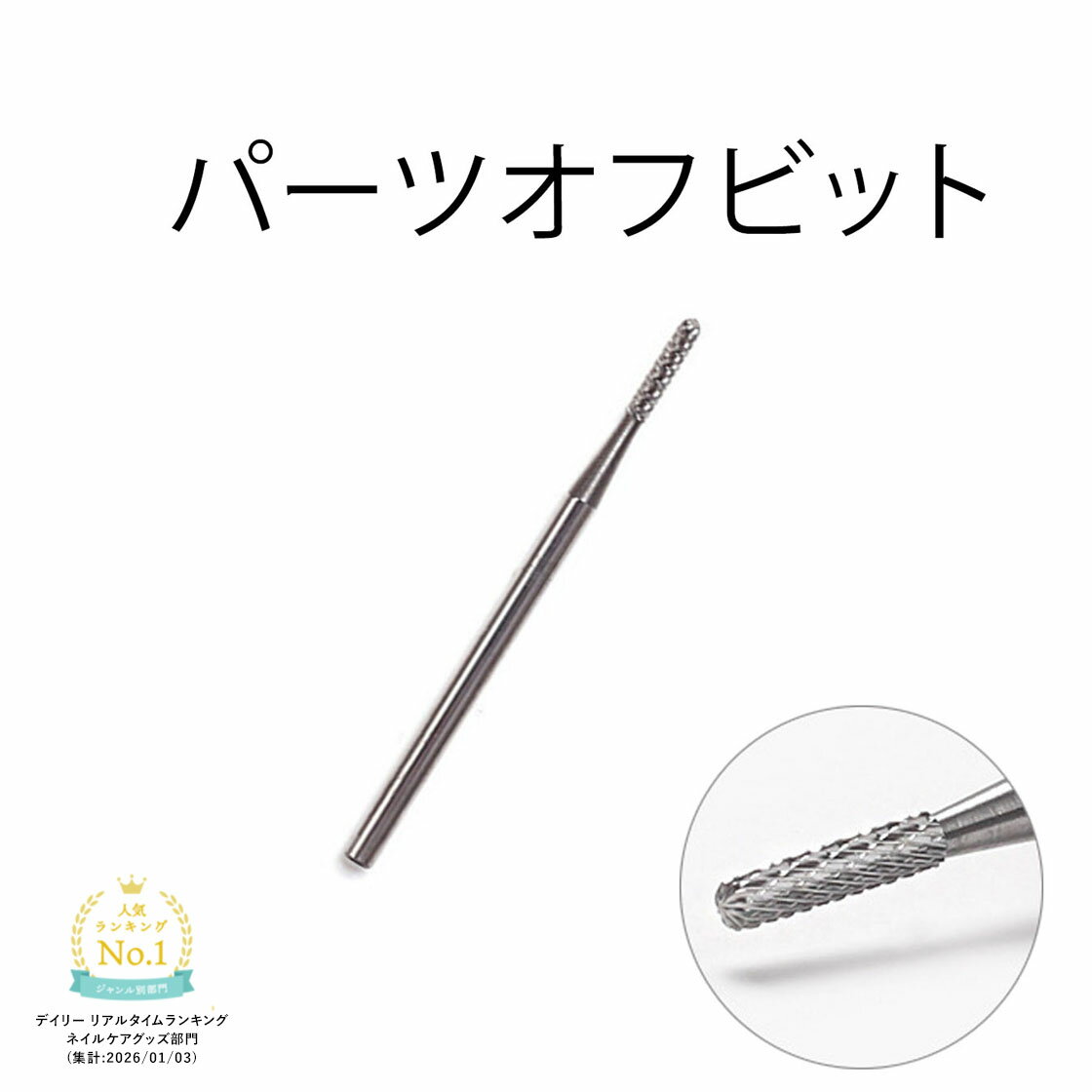 ◆商品名:ネイルビット オフビット ネイルオフ用ビット ネイル ジェルネイル ネイルマシン プロ用 セルフネイル オフ サンディング 表面削り 処理 ネイルオフ リノジェル (XC, 1)粗さ:M/C/XCネイルオフ用(表面削り用)のオフ用ビットです。 上部が若干丸い事によって,キューティクル/サイドを攻めやすく とっても便利なビットです。 ビットの粗さはM/C/XCの3タイプ。 スムーズに削れる 自社サロンでも愛用しているビットです。 サイズ ビット先 横0.7cm 全長3.8cm 同封品 ビット1本 ケース