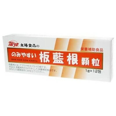 のみやすい板藍根(バンランコン)顆粒 太陽食品 板藍根に甘草、生姜、ビタミンCなどを加え、飲みやすい顆粒に仕上げました。季節の変わり目の健康維持などに。 製造元:太陽食品 内容量:12g(1g×12包) サイズ(奥行×横幅×高さ):20×123×44(mm) 1日量(目安):2〜3包 持ち運びにも便利な分包タイプ。お湯や水とともにお召し上がりください。 「のみやすい板藍根(バンランコン)顆粒 太陽食品」は、アブラナ科タイセイの根「板藍根」を乾燥させ、甘草・生姜・ビタミンC・ナイアシン等を配合し、飲みやすい顆粒に仕上げた健康補助食品です。季節の変わり目などの健康維持などにお役立てください。眠くなる成分は入っていませんので、車の運転や受験勉強の際にもご利用いただけます。外出時などの持ち運びにも便利な分包タイプ、12包入りです。 のみやすい板藍根(バンランコン)顆粒 太陽食品 のお召し上がり方 1栄養補助食品として、1包をお湯または水でお飲みになるか、ティーカップに1包を入れお湯を注いでよくかき混ぜお飲みください。(1日2〜3包を目安としてください。) 原材料 板藍根、甘草、生姜、ビタミンC、ナイアシン、ビタミンB2、ビタミンB1、ビタミンA、ビタミンD3 栄養成分表 100gあたり エネルギー 382kcal たんぱく質 13.9g 脂質 2.0g 炭水化物 77.0g ナトリウム 48.2mg 広告文責:いいもの健康有限会社 電話番号: 042-498-2113