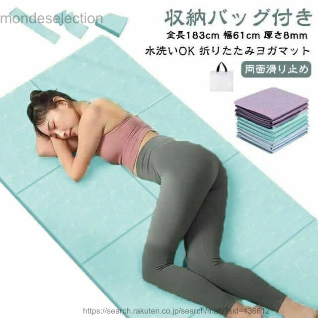 全長183cm 幅61cm 厚さ8mm 折りたたみヨガマット両面滑り止め収納バッグ付き水洗いOK両面滑り止め仕様でグリップ力に優れています。ストレッチ、バランスエクササイズ、トレーニング、ダイエットエクササイズなど、さまざまなアクティビティに最適です。 サイズ 183x61x0.8cm サイズについての説明 183x61x0.8cm 素材 TPE 色 グリーン ピンク ブルー グレー パープル 備考 ●サイズ詳細等の測り方はスタッフ間で統一、徹底はしておりますが、実寸は商品によって若干の誤差(1cm〜3cm )がある場合がございますので、予めご了承ください。 ●製造ロットにより、細部形状の違いや、同色でも色味に多少の誤差が生じます。 ●パッケージは改良のため予告なく仕様を変更する場合があります。 ▼商品の色は、撮影時の光や、お客様のモニターの色具合などにより、実際の商品と異なる場合がございます。あらかじめ、ご了承ください。 ▼生地の特性上、やや匂いが強く感じられるものもございます。数日のご使用や陰干しなどで気になる匂いはほとんど感じられなくなります。 ▼同じ商品でも生産時期により形やサイズ、カラーに多少の誤差が生じる場合もございます。 ▼他店舗でも在庫を共有して販売をしている為、受注後欠品となる場合もございます。予め、ご了承お願い申し上げます。 ▼出荷前に全て検品を行っておりますが、万が一商品に不具合があった場合は、お問い合わせフォームまたはメールよりご連絡頂けます様お願い申し上げます。速やかに対応致しますのでご安心ください。