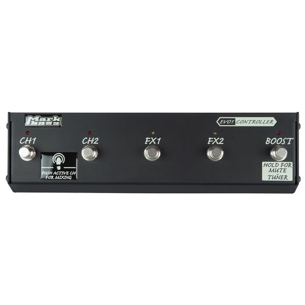 【お取り寄せ】※メーカー品切れの場合、お時間をいただく場合もございます。お急ぎの方はお手数ですが、ご注文の前にメールで在庫の確認のお問い合わせを下さい。Markbass EVO1 専用コントローラー。チャンネル切り替え、FX オン/オフ、ブーストオン/オフ、チューナー(ミュート)オン/オフをコントロール。 *ブースト機能、FX のオン/オフを使用するには、MB EVO1 Controller、またはプログラム可能な MIDI フ ットコントローラー等が必要です。
