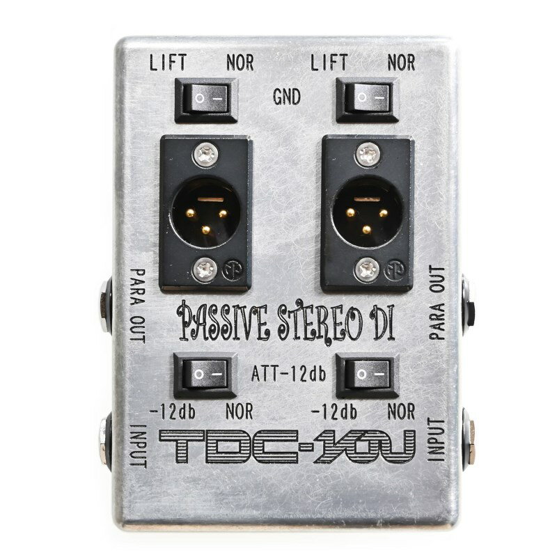 ■商品紹介大阪発、スタジオエンジニアの要望に応えたプロフェッショナルDI!ステレオ仕様ながら、ベース直結で強烈に良い音が出るDIなので、実はベース用にもオススメです!☆良質なトランスを2個使用した電源いらずのパッシブタイプ・ステレオDI出音に差が出る極上のアナログ感。ラップトップ/キーボードプレイヤーに最適なアイテムです。多くのベーシストに音の良さから支持をいただいているTDC BASS DIの心臓部、音の要であるトランスTSS-107 を電子回路を使わずステレオで使用した電源のいらない、あるとなにかと便利なお手軽機材です。使用トランスTSS-107 はTDC のオリジナルオーダートランスです。トランスは構成要素の素材や組合わせで大きく性能/ 音質が変わります。 パーマロイコアーの他、他の要素を組替えた試作品をSTUDIO YOU の録音スタジオで多数の有名DI や、録音機器内蔵トランスとの比較テストを行い仕様選定したトランスを、ノイズ防止の為パーマイロケースに入れています。その他、TDC 製品共通の高音質構成で製造しており、使用時の音質変化や劣化を最小限に抑えております。キーボード/キーボードミキサー/ DJ ミキサー/携帯プレーヤー等/オーディオインターフェイス等と、ライブ会場のPA 卓/録音卓への接続に、良質のトランス特有のアナログ感をお楽しみ下さい。電源いらずなので、日頃電池交換などのメンテが不要。電源がないため、キャノンを接続して入力ジャックを抜き差ししても基本的にはノイズは発しません。■仕様トランスダイレクト INPUT(DC カットC 有り)・・・2GND LIFT SW・・・2ATT -12db SW・・・2(注:接続ミキサーのマイクアンプにより、減衰比は増減します)XLR M OUTPUT ・・・2PARA OUTPUT・・・2サイズ:w120mm x D92mm x H42mm(ゴム足含む)重さ:340g※本機にはビンテージパーツは使用しておりません。検索キーワード:イケベカテゴリ_エフェクター_ベース用エフェクター_ベース用プリアンプ・EQ・DI_TDC_新品 SW_TDC_新品 JAN:4582297981201 登録日:2014/07/03 エフェクター コンパクトエフェクター ストンプボックス