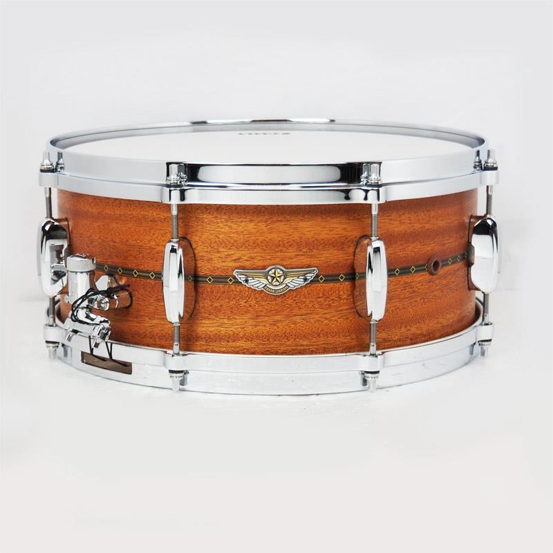 ■商品紹介-STAR Solid Mahogany-STARシリーズのソリッドシェル(単板)スネアは、個性的なサウンドをもたらすメイプルとマホガニーの2つのシェルラインナップ。単板シェルによる繊細で素早い反応とドライな響きに加えて、マホガニーシェルのもたらす中低音の強調されたソリッドなサウンドが特長です。ウッド・インレイをシェルのアウター・プライ中心に埋め込んだフィニッシュが標準仕様となります。オプションにより、ウッド・インレイ無しにすることも可能です(価格の変更はございません)。※シェルカラーは、ナチュラル・マホガニー(OMH)のみとなります。〜FEATURES〜■Air HoleSTARシリーズのスネアドラムは、シェルの水平方向の中央部分に3つのエアーホールが取り付けられています。通常のエアーホールが1つのシェルと比較して、より明るく、ドライなサウンドを生み出します。■Super Sensitive Hi-Carbon Snappy Snareスネアヘッドへの高い追従性、そして絶妙な吸い付きと歯切れの良い響きを両立したことで、軽やかで歯切れの良いサウンドを実現。細かいパッセージも逃さない繊細さと豊かな表現力を獲得しました。■Linear-Drive Strainer (US. PAT.NO.8017846) (MLS50A)レバーを素早く動かしても、スナッピーがボトムヘッドに当たる接触音を、極限まで減らすことに成功したストレイナー。シェルやストレイナーに余計な負担を掛けることなく、スナッピーを確実にヘッドに密着させる構造を採用しています。■Newly Designed One-Piece Lug新しくデザインされたラグは、小ぶりなデザインを採用し、シェルとの接触面を可能な限りまで小さくした、ブリッジタイプです。小さめのラグにすることで、スネアドラム本体の重量を軽くするとともに、13、14ともに8テンション仕様にあえてこだわりました。パーツ点数を少なくすることで、シェル本来のもつポテンシャルをよりオープンに、かつレゾナンス豊かにします。■Snappy Bedスネアドラムのボトムサイドには、スナッピーの反応を良くするためにスネア・ベッドと呼ばれる『えぐり』加工がされており、その形状はスネアサウンド、特にスナッピーのサスティーンと繊細さを決定付ける重要な要素となります。STAR Drumのスネアドラムでは、従来のTAMAドラムで採用してきた形状とは異なる、オリジナルシェイプのものを採用。タムタムやバスドラム同様に、シェルのレゾナンスをより生かしつつ、音粒立ちの良い、明瞭なサウンドを得るため、スナッピーのワイヤー全体が出来るだけ均等にヘッド面に接するように、図の赤線のように平らな面を多めに取っています。<スペック>サイズ:14×6シェル:Mahoganyフィニッシュ:OMH (Natural Mahogany)フープ:Die-cast Hoopsラグ:MSL90Sストレイナー/バット:MLS50A / MLS50Bスナッピー:MS20RL14Sドラムヘッド:REMO Coated Ambassador / Snare Side Ambassador付属品:ソフトケース、チューニングキー※画像はイメージとなるため、木目など異なる場合がございます。予めご了承ください。※店頭展示、試打を解禁しております為、多少のキズやヘッドへの打痕などある場合がございます。予めご了承ください。検索キーワード:イケベカテゴリ_ドラム_スネアドラム_TAMA_新品 SW_TAMA_新品 JAN:4515110869196 登録日:2025/10/24 スネア スネアドラム タマ 星野楽器