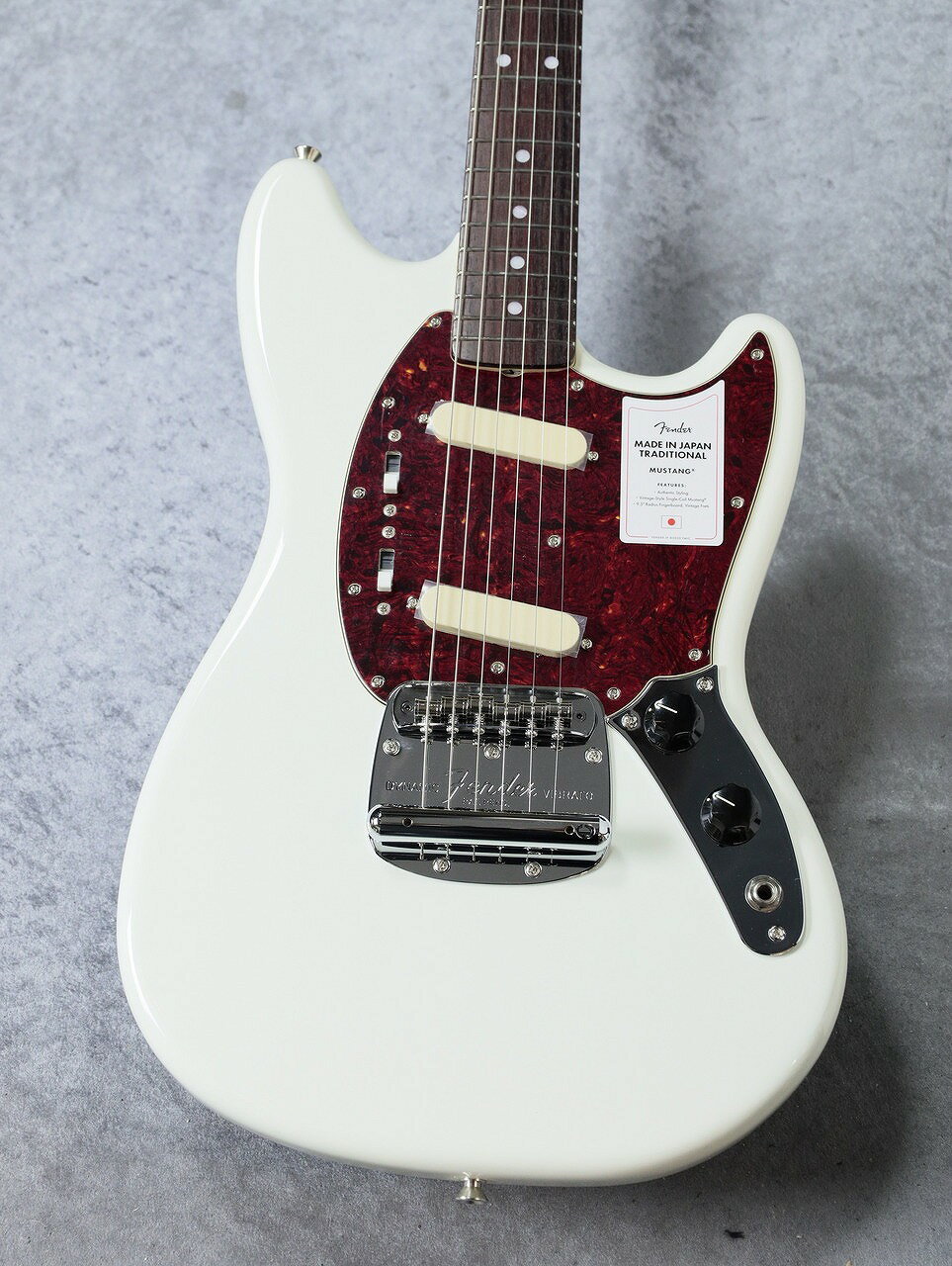 ≪ショッピングクレジット無金利&超低金利キャンペーン実施中!!!≫ 48回払いまで金利0% [ 54回 2%/60回 2.8%/72回 5.8% /84回 7.6% ] ★対象商品限定 ※一部対象外がございます。詳細はお問い合わせください。 ------------------------------------------------------------------- フェンダーの伝統的な楽器製作の美学と日本の洗練されたクラフトマンシップを融合することで導き出されたMade In Japan Traditional Series! 1964年より入門向けのモデルとして生産が開始されたムスタング。 入門向けのモデルはムスタングが生産される以前よりデュオソニック等ありましたが、 新開発のトレモロユニットを搭載した上位機種として誕生しました。 一時生産は終了してしまうものの、 1980年代後期にフェンダージャパンより復刻モデルが誕生し、 現在に至るまでも”ショートスケール”の代表ギターとして人気を誇るモデルとなっております。 位相の切り替えが可能な3wayのスライドスイッチがフロント、リア両ピックアップに配線されており、 ムスタング最大の特徴とも言えるミックスサウンド時にフロント、リアの位相を反転させて打ち消しあうフェイズアウトサウンドを奏でる事が出来ます。 低音がすっきりし、ストラトキャスターのハーフトーンに近いサウンドとなっており、 他のギターに出力する事が出来ないムスタングならではのトーンとなっております。 また、ショートスケール仕様となっており、 弦を抑える際の指への負荷が軽減される傾向にある為、 バッキングにおいての演奏性は非常に素晴らしいものではないのでしょうか。 これからギターを始める方は勿論、高品質なムスタングをお探しの方等様々な場面でニーズに応えてくれるムスタングを是非お試し下さいませ。 〜以下、メーカーサイトより〜 フェンダーの伝統的な楽器製作の美学と日本の洗練されたクラフトマンシップを融合することで導き出されたMade in Japan Traditionalシリーズ。 フェンダーの正統なDNAが、確かなMade in Japanクオリティで蘇ります。 Made in Japan Traditional 60s Mustangはグロスフィニッシュのバスウッドボディを採用。 22本のヴィンテージスタイルフレットを装備した9.5インチラジアスの”U” シェイプメイプルネックがTraditionalシリーズならではのクラシカルな演奏製を提供します。 ダイナミックヴィブラートテイルピース付きのフローティングブリッジ、そしてTraditionalシリーズのために選定されたオリジナルピックアップはリアルで音楽的なヴィンテージトーンを奏でます。 堅実なギタークラフトマンシップと、プレイヤーのニーズに柔軟に対応する答えが、本シリーズに反映されています。 付属品:メーカー保証書、ギグバッグ -SPEC- Body Material:Basswood Body Finish:Gloss Polyester Body Shape:Mustang? Neck Material:Maple Neck Finish:Gloss Urethane Neck Shape:"U" Shape Scale Length:24" (610 mm) Fingerboard Material:Rosewood Fingerboard Radius:9.5" (241 mm) Number of Frets:22 Fret Size:Vintage Nut Material:Bone Nut Width:1.578" (40 mm) Position Inlays:White Dot Bridge Pickup:Single-Coil Mustang? Neck Pickup:Single-Coil Mustang? Controls:Master Volume, Master Tone Switching:2-On/Off Slide Switches, One for Each Pickup Configuration:SS Bridge:Floating Bridge with Dynamic Vibrato Tailpiece Hardware Finish:Chrome Tuning Machines:Vintage-Style with Aged White Plastic Buttons Pickguard:3-Ply Aged White Pearl Control Knobs:Black Plastic Neck Plate:4-Bolt ♪♪♪♪♪♪♪♪♪♪♪♪♪♪♪♪♪♪♪♪♪♪♪♪♪♪♪♪♪♪♪♪ 全国通信販売も承ります。 楽器の詳細及び通信販売の手続き方法は、 お電話かe-mailにてお問い合わせ下さい。 (株)黒澤楽器店 お茶の水駅前店新館1F 東京都千代田区神田駿河台2-2-2 TEL 03-3292-7148 eki@kurosawagakki.com