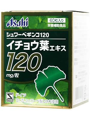 商品説明「シュワーベギンコ 120」は、イチョウ葉エキスのパイオニアと知られるシュワーベ製薬の健康補助食品です。1粒に120mgのイチョウ葉エキスが配合され、その成分にはフラボノイドが24%、テルペンラクトンが6%、含まれています。イチョウ葉エキスのパワーを凝縮。勉強・読書を快適にしたい方、快適な生活を過ごしたい方などにおすすめします。摂取上のご注意 アレルギー体質等でまれに体質にあわない方もおりますので、そのような場合は、ご使用を中止してください。 12才以下のご使用は避けてください。 医薬品を服用されている方は摂取に際し医師または薬剤師にご相談ください。保管上の注意小児の手の届かない場所に保管すること。 発売元 アサヒフードアンドヘルスケア 内容量:18.4g(308mg*60粒)30-60日分1日量(目安):1-2粒サイズ:67*88*60(mm)JANコード: 4946842820160※パッケージデザイン等は予告なく変更されることがありますイチョウ葉エキスとは乾燥させてイチョウの葉を水やエタノールに漬け、成分を抽出したものです。イチョウ葉には30種類以上のフラボノイド類や、テルペノイド類のギンコライド、ビロバライトなどが含まれています。イチョウの出現は約2億5千年前であるとされています。原材料イチョウ葉エキス、微結晶セルロース、コーンスターチ、メチルセルロース、高級脂肪酸、着色料(二酸化チタン、カラメル)、カルナウバロウ栄養成分表(100gあたり)熱量 125.6kcal、たんぱく質 0g、脂質 2.5g、炭水化物 28.2g、ナトリウム 141mg原材料中のイチョウ葉エキスフラボノイド含有率 24%、テルペンラクトン含有率 6%、ギンコール酸含有量 5ppm以下 広告文責・販売事業者名:株式会社ビューティーサイエンスTEL 050-5536-7827※一部成分記載省略あり※メーカー名:アサヒグループ食品※原産国:パッケージ裏に記載。※区分:健康食品