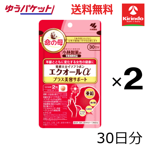 大決算セール開催 ゆうパケットで送料無料 2個セット 小林製薬の栄養補助食品(サプリメント) 発酵大豆イソフラボン エクオールα プラス美容サポート 60粒(30日分)×2個