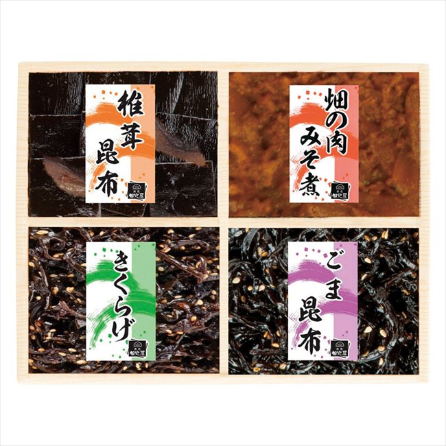 ■商品紹介:職人が丹精込めて炊き上げた和食の保存食、佃煮・昆布の詰合せです。 ■商品内容:セット内容/椎茸昆布・きくらげ(各70g)・畑の肉みそ煮・ごま昆布(各30g)×各1 ■パッケージサイズ:20.4×25.8×3.5cm ■賞味期限(ある場合):常温140日 メーカー希望小売価格はメーカーカタログに基づいて掲載しています ■さまざまなギフトアイテムをご用意しております。 内祝 内祝い お祝い返し ウェディングギフト ブライダルギフト 引き出物 引出物 結婚引き出物 結婚引出物 結婚内祝い 出産内祝い 命名内祝い 入園内祝い 入学内祝い 卒園内祝い 卒業内祝い 就職内祝い 新築内祝い 引越し内祝い 快気内祝い 開店内祝い 二次会 披露宴 お祝い 御祝 結婚式 結婚祝い 出産祝い 初節句 七五三 入園祝い 入学祝い 卒園祝い 卒業祝い 成人式 就職祝い 昇進祝い 新築祝い 上棟祝い 引っ越し祝い 引越し祝い 開店祝い 退職祝い 快気祝い 全快祝い 初老祝い 還暦祝い 古稀祝い 喜寿祝い 傘寿祝い 米寿祝い 卒寿祝い 白寿祝い 長寿祝い 金婚式 銀婚式 ダイヤモンド婚式 結婚記念日 ギフト ギフトセット セット 詰め合わせ 贈答品 お返し お礼 御礼 ごあいさつ ご挨拶 御挨拶 プレゼント お見舞い お見舞御礼 お餞別 引越し 引越しご挨拶 記念日 誕生日 父の日 母の日 敬老の日 記念品 卒業記念品 定年退職記念品 ゴルフコンペ コンペ景品 景品 賞品 粗品 お香典返し 香典返し 志 満中陰志 弔事 会葬御礼 法要 法要引き出物 法要引出物 法事 法事引き出物 法事引出物 忌明け 四十九日 七七日忌明け志 一周忌 三回忌 回忌法要 偲び草 粗供養 初盆 供物 お供え お中元 御中元 お歳暮 御歳暮 お年賀 御年賀 残暑見舞い 年始挨拶 ボーリング大会 景品 レミパン ゼリー スターバックス 千疋屋 結婚式 そうめん ローラアシュレイ プリン 話題 ディズニー カタログギフト ティファール ビタクラフト ステンレスタンブラー リラックマ のし無料 メッセージカード無料 ラッピング無料 ギフトにぴったりのアイテムをご紹介! 贈り物に悩んでいる方へ、心温まるギフトアイテムを取り揃えました。高品質な食品、ふわふわのタオル、美しい食器、そしてセンスあふれる雑貨まで、幅広いラインナップであなたの大切な人への思いを伝えます。 特徴 高品質:厳選された素材と丁寧な製造工程で作られた商品ばかり。どれも長く愛用いただけます。 多用途:どんなシーンでも使える万能アイテムが揃っています。誕生日、結婚祝い、新築祝いなど、さまざまな場面に最適です。 デザイン:シンプルで洗練されたデザインから、カラフルで個性的なものまで、多彩なバリエーションをご用意。 お手頃価格:高品質ながら手ごろな価格で、コストパフォーマンスも抜群。 おすすめの用途とシーン 誕生日プレゼント:大切な人の特別な日を祝うために、実用的かつ心温まるギフトを。食品やタオルは、日常で役立つアイテムとして喜ばれます。 結婚祝い:新しい生活を始めるカップルに、美しい食器やおしゃれな雑貨を。幸せな家庭を築くお手伝いができます。 新築祝い:新しい家に引っ越した友人や家族へ、インテリアにぴったりの雑貨や実用的なタオルを。快適な生活をサポートします。 お返しギフト:感謝の気持ちを込めて、おしゃれで実用的なアイテムを。食品はもちろん、使い心地の良いタオルや美しい食器も喜ばれます。 季節の贈り物:お中元やお歳暮、季節の挨拶として、季節に合ったギフトを。夏には涼しげな雑貨、冬には温かみのあるタオルや食品が最適です。 贈る相手に合わせたおすすめ グルメな方へ:美味しい食品を贈れば、食卓が一層華やかに。特別な時間を演出します。 家庭的な方へ:ふわふわのタオルや使いやすい食器で、日常生活に彩りを。 オシャレな方へ:センスあふれる雑貨で、インテリアを一層魅力的に。 まとめ あなたの気持ちを込めたギフト選びをお手伝いします。どれも心を込めて選んだアイテムばかりです。大切な人への贈り物として、自信を持っておすすめします。 商品概要 [分類] 以下のような商品をお探しの方にオススメです。スイーツ スィーツ スウィーツ Sweets ケーキ お菓子 洋菓子 デザート おやつ 小腹対策 食品 食べ物 / チョコレートケーキ チョコレート ガトーショコラ チーズケーキ 生菓子 生ケーキ ベイクドチーズケーキ [評価・マスコミ] ランキング1位のおすすめ(お勧め オススメ) インスタ映え SNS 評判 今話題の人気商品 [サービス] 以下のサービスをご利用いだだけます。不可の場合あり。お取り寄せ 全国配送 全国発送 オーダー 注文 デリバリー 取寄せ 宅配 ネット通販 持ち運び可 / 送料無料 送料込み 無料ギフト対応 日持ち長い 長期保存 賞味期限が長い 名入れ 当日発送 お急ぎ便 即日配送 即日発送 翌日配送 翌日発送 前日に買う あす楽 明日楽 即納 翌日 あす着 明日届く 配送日指定可 冷凍保存可 冷凍保管 冷凍便 ギフトラッピング ギフト対応 予約 メッセージ付き 有料メッセージカード 有料お誕生日カード ホワイトデー