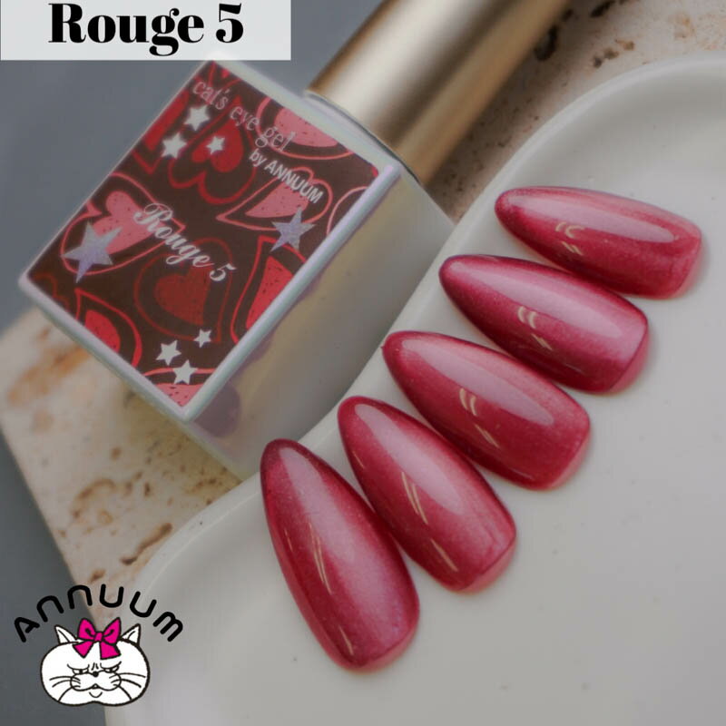 商品名ANNUUM cat's eye gel 10ml Rouge5カテゴリジェルネイル;カラージェル;マグネット;ボトルタイプ;【ポリッシュタイプ】マグネット;マグネットジェル容量/サイズ10ml商品説明・LED/UVライト両方に対応・初心者でも扱いやすい粘度【製造】日本製容量 3g【硬化時間】LED9w/60秒UV36w/60秒※使用するランプにより硬化時間が異なります。1 必ずボトルを振って撹拌させてください。2 ベースジェルを塗布して硬化後にキャッツアイジェルを塗布します。3 マグネットをかざして粒子が動いてお好みのデザインになったら硬化してください。【ご利用上の注意】※自爪に直接塗らないでください※撹拌をしてからご使用下さい※異常が現れた場合はすぐに使用を中止し医師に相談してください。※幼児の手の届かない場所に保管してください。※高温多湿、直射日光のあたる場所に、火気厳禁<商品名>ANNUUM cat's eye gel 10ml Rouge5<カテゴリ>ジェルネイル;カラージェル;マグネット;ボトルタイプ;【ポリッシュタイプ】マグネット;マグネットジェル容量/サイズ:10ml・LED/UVライト両方に対応・初心者でも扱いやすい粘度【製造】日本製容量 3g【硬化時間】LED9w/60秒UV36w/60秒※使用するランプにより硬化時間が異なります。1 必ずボトルを振って撹拌させてください。2 ベースジェルを塗布して硬化後にキャッツアイジェルを塗布します。3 マグネットをかざして粒子が動いてお好みのデザインになったら硬化してください。【ご利用上の注意】※自爪に直接塗らないでください※撹拌をしてからご使用下さい※異常が現れた場合はすぐに使用を中止し医師に相談してください。※幼児の手の届かない場所に保管してください。※高温多湿、直射日光のあたる場所に、火気厳禁