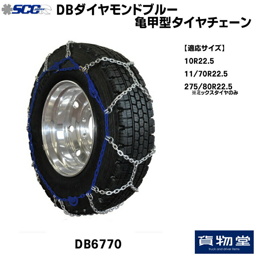 【時間指定不可】 【代引き不可】【メーカー直送手配品】 【お届け先住所について】 こちらの商品は個人宅住所への配送は不可となっております。 お届け先住所は会社法人宛にてお願いします。 大型トラック用タイヤチェーン 亀甲型タイプのDB合金チェーンです。 ダイヤモンドパターンであらゆる路面で威力を発揮します。 トレーラー・バスユーザーの絶大なる支持に応えたタイヤチェーンです。 新改良のラッチロックにより装着性がさらにアップ! 走行中の転がり抵抗が少なく路面への衝撃低減+磨耗率も低減=ECO <DBチェーンの特性> ●ゴムバンド不要 ●合金チェーンで軽量&高耐久 ●ダイヤモンドパターンにより横滑りを防ぎます。 <適応サイズ> 10.00-20 11R22.5 275/80R22.5(※スタッドレスタイヤのみ) 注:DBシリーズは全てスタッドレスタイヤ・ミックスタイヤ用です。ノーマルタイヤには適合しません。 <規格表> 重量:18.0kg クロスメンバー:DB9640 パターン:9-5-11 サイドリンク:98 段数:7 <注意事項> ●取寄せ対応品になります。 サイズの誤り等による返品・キャンセルは出来ません。 十分にご確認の上ご注文お願いします。 ●在庫状況によっては取寄せのため納期約1週間かかります。 お急ぎの場合には必ず在庫状況をご確認お願いします。