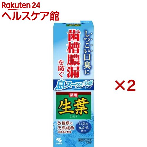お店TOP>日用品>オーラルケア>歯磨き(ハミガキ)>歯周病歯磨き>薬用生葉 息スーッと実感タイプ (100g×2セット)商品区分:医薬部外品【薬用生葉 息スーッと実感タイプの商品詳細】●生薬由来成分※1が歯ぐきに届き、歯槽膿漏を防ぐ。口臭を防ぐ!●薬用成分 ヒノキチオールの作用・歯ぐき細胞活性化作用・殺菌作用・菌の毒素※2阻害作用 ※2 ジンジパイン・歯ぐきへの菌の侵入抑制作用●Wの殺菌成分配合(ヒノキチオール、CPC)・歯周ポケットに潜む歯ぐき臭の原因菌を殺菌●抗炎症作用※1グリチルリチン酸ジカリウム●清涼感のレベル4●清涼感ある和漢ハーブの香味●6種類の天然植物由来成分配合・矯味成分:トウキエキス(1)、シャクヤクエキス、セージエキス・薬用成分:グリチルリチン酸ジカリウム(甘草由来成分)・洗浄成分:ムクロジエキス・湿潤成分:ニンジンエキス【販売名】生葉Ia【効能 効果】・歯周炎(歯槽膿漏)の予防。・歯肉炎の予防。・むし歯の発生及び進行の予防。・歯を白くする。・口臭の防止。・口中を浄化する。・口中を爽快にする。【用法 用量】適量を歯ブラシにとり、歯及び歯ぐきをブラッシングする。【成分】湿潤剤:濃グリセリン、ソルビット液、ニンジンエキス/溶剤:水、エタノール/清掃剤:無水ケイ酸/基剤:無水ケイ酸/可溶剤:POE硬化ヒマシ油/安定剤:酸化Ti、DL-アラニン/発泡剤:ラウリル硫酸Na、ヤシ油脂肪酸アミドプロピルベタイン液/粘度調整剤:ヒドロキシエチルセルロース、キサンタンガム/薬用成分:モノフルオロリン酸ナトリウム(フッ素)、グリチルリチン酸2K、セチルピリジニウム塩化物水和物(CPC)、ヒノキチオール/香味剤:香料(和漢ハーブの香味)/矯味剤:乳酸Al、トウキエキス(1)、シャクヤクエキス、セージエキス/吸着剤:グルコン酸Cu/防腐剤:パラベン/洗浄剤:ムクロジエキス/着色剤:黄203、青1【注意事項】1.発疹などの異常が出たら使用を中止し、医師に相談すること2.口内に傷がある場合は使用をひかえること3.目に入ったらこすらず、すぐに充分洗い流し、異常が残る場合は眼科医に相談すること※使用期限を過ぎた製品は使用しないこと【原産国】日本【ブランド】生葉【発売元、製造元、輸入元又は販売元】小林製薬※説明文は単品の内容です。商品に関するお電話でのお問合せは、下記までお願いいたします。受付時間9:00-17:00(土・日・祝日を除く)健康食品・サプリメント:0120-5884-02歯とお口のケア:0120-5884-05衛生雑貨用品・スキンケア・ヘアケア:0120-5884-06芳香・消臭剤・水洗トイレのお掃除用品:0120-5884-07台所のお掃除用品・日用雑貨・脱臭剤:0120-5884-08リニューアルに伴い、パッケージ・内容等予告なく変更する場合がございます。予めご了承ください。・単品JAN:4987072060322小林製薬541-0045 大阪府大阪市中央区道修町4-4-10※お問合せ番号は商品詳細参照広告文責:楽天グループ株式会社電話:050-5577-5042[歯磨き粉 ハミガキ/ブランド:生葉/]
