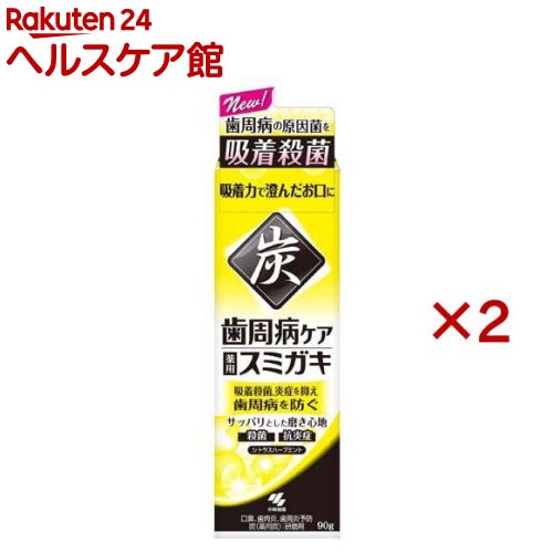 お店TOP>日用品>オーラルケア>歯磨き(ハミガキ)>歯磨き粉>歯周病ケア スミガキ シトラスハーブミント (90g×2セット)商品区分:医薬部外品【歯周病ケア スミガキ シトラスハーブミントの商品詳細】●歯周病の原因菌を吸着殺菌し、炎症を抑え歯周病を防ぐハミガキ●殺菌成分CPC( 塩化セチルピリジニウム)、抗炎症成分GK2(グリチルリチン酸2K)配合●炭(研磨剤)がお口の隅々に届き歯垢や菌を掻き出します●シトラスハーブミントの香りで、お口をさっぱり爽快にします【販売名】SGデンタルペーストMa【効能 効果】・歯周炎(歯槽膿漏)の予防。歯肉(齦)炎の予防。むし歯の発生及び進行の予防。・口臭の発生の防止。歯を白くする。口中を浄化する。口中を爽快にする。・歯周病は歯肉炎、歯周炎の総称です【用法 用量】・適量を歯ブラシにとり、歯及び歯ぐきをブラッシングする。【成分】・溶剤:水、エタノール・研磨剤:水酸化Al、薬用炭・湿潤剤:濃グリセリン・pH調整剤:ケイ酸Na、リン酸水素ニナトリウム、リン酸1Na、水酸化Na・粘度調整剤:無水ケイ酸・矯味剤:乳酸Al、塩化Na・発泡剤:ラウリル硫酸Na、ラウロイルサルコシンNa・粘結剤:ヒドロキシエチルセルロース・香味剤:香料(シトラスハーブミントタイプ)・薬用成分:モノフルオロリン酸ナトリウム(フッ素)、塩化セチルピリジニウム、グリチルリチン酸2K・可溶剤:POE硬化ヒマシ油・清涼剤:メントール・甘味剤:サッカリンNa・防腐剤:パラベン【注意事項】・1. 発疹などの異常が出たら使用を中止し、医師に相談すること・2. 口内に傷がある場合は使用をひかえること・3. 目に入ったらこすらず、すぐに充分洗い流し、異常が残る場合は眼科医に相談すること・衣類についた場合は、すぐに水で洗い流すこと・炭が原因で、歯が黒くなることはありません・歯磨き後はブラシ根元まで水で充分に洗い流すこと・低温の場所を避け保管すること・ご使用に際して、この説明書きをよく読み、保管してください。【原産国】日本【ブランド】スミガキ【発売元、製造元、輸入元又は販売元】小林製薬※説明文は単品の内容です。商品に関するお電話でのお問合せは、下記までお願いいたします。受付時間9:00-17:00(土・日・祝日を除く)健康食品・サプリメント:0120-5884-02歯とお口のケア:0120-5884-05衛生雑貨用品・スキンケア・ヘアケア:0120-5884-06芳香・消臭剤・水洗トイレのお掃除用品:0120-5884-07台所のお掃除用品・日用雑貨・脱臭剤:0120-5884-08リニューアルに伴い、パッケージ・内容等予告なく変更する場合がございます。予めご了承ください。・単品JAN:4987072095836小林製薬541-0045 大阪府大阪市中央区道修町4-4-10※お問合せ番号は商品詳細参照広告文責:楽天グループ株式会社電話:050-5577-5043[歯磨き粉 ハミガキ/ブランド:スミガキ/]