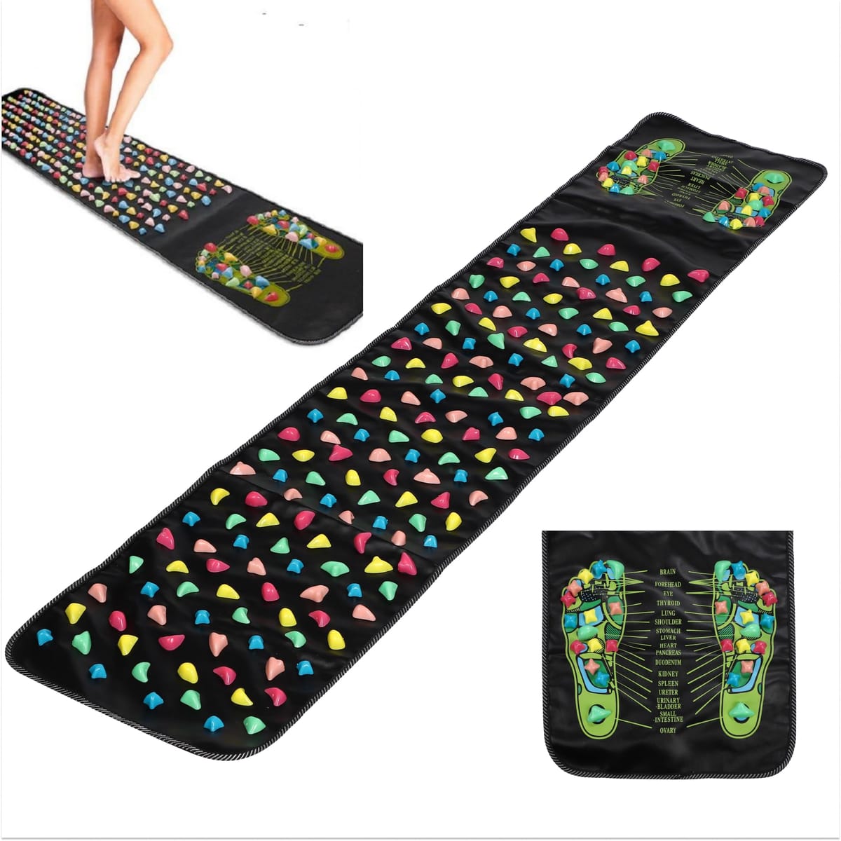 【足裏の刺激で健康維持!】 毎日の生活で歩くたびに全体重がかかる足裏。足裏に負担がかかりすぎれば姿勢が悪くなり、膝痛・腰痛につながることもあります。それほど大事な足裏ですが、足裏のツボは体の様々な器官につながっているため、足裏のツボを様々に刺激することで疲労回復や健康維持が期待できます。本商品はさまざまな形・大きさの突起がちりばめられ、その上を歩くことで足裏を手軽に刺激してくれます。【どこでも簡単!足つぼマット】 このマットを敷くだけで、自宅のあらゆる場所がリラクゼーションスポットに変わります。玄関やキッチン、洗面所など、普段よく歩く場所にセットするだけで、自然と足つぼマッサージができます。また、テーブル下にしいて、作業をしながら手軽に足裏を刺激できます。忙しい毎日の中でも簡単に健康維持が可能です。【コンパクトに丸められるので応用自在】 この足つぼマットは全長約175cm、足裏専用部分は約95cmでコンパクトに丸められるので、全身のマッサージにも使用可能です。たとえば、ソファーにバスタオルを敷いた上で、本商品をおけば手軽に背中のツボも刺激することができ、背中へのマッサージ効果も期待できます。【足つぼチャートでセルフチェック】 付属の足つぼチャートで、痛みを感じるポイントを確認し、自分の体調を見つめ直すきっかけになさって下さい。足裏を刺激することで、血行が促進され、代謝アップや免疫力向上が期待できます。日々のセルフケアに、ぜひ取り入れてみてください。【注意事項】 ※初心者の方ですと、体重がいきなり足裏のツボにかかって、とても痛いと感ぜられるかもしれません。はじめは本商品の上にタオルを敷いて利用するなど、毎日少しずつ続けることで、徐々に快適な刺激へと変わっていきます。くれぐれもご無理はなさらないでください。 ※商品のサイズや形状を事前にご確認の上でご購入ください。 ※輸入品の為、若干の傷・汚れ・サビがある場合がございます。 ※取扱説明書は付属しておりません。 ※モニター環境等によって色の見え方に若干差が生じる場合があります。 【足裏の刺激で健康維持!】 毎日の生活で歩くたびに全体重がかかる足裏。足裏に負担がかかりすぎれば姿勢が悪くなり、膝痛・腰痛につながることもあります。それほど大事な足裏ですが、足裏のツボは体の様々な器官につながっているため、足裏のツボを様々に刺激することで疲労回復や健康維持が期待できます。本商品はさまざまな形・大きさの突起がちりばめられ、その上を歩くことで足裏を手軽に刺激してくれます。 【どこでも簡単!足つぼマット】 このマットを敷くだけで、自宅のあらゆる場所がリラクゼーションスポットに変わります。玄関やキッチン、洗面所など、普段よく歩く場所にセットするだけで、自然と足つぼマッサージができます。また、テーブル下にしいて、作業をしながら手軽に足裏を刺激できます。忙しい毎日の中でも簡単に健康維持が可能です。 【コンパクトに丸められるので応用自在】 この足つぼマットは全長約175cm、足裏専用部分は約95cmでコンパクトに丸められるので、全身のマッサージにも使用可能です。たとえば、ソファーにバスタオルを敷いた上で、本商品をおけば手軽に背中のツボも刺激することができ、背中へのマッサージ効果も期待できます。 【足つぼチャートでセルフチェック】 付属の足つぼチャートで、痛みを感じるポイントを確認し、自分の体調を見つめ直すきっかけになさって下さい。足裏を刺激することで、血行が促進され、代謝アップや免疫力向上が期待できます。日々のセルフケアに、ぜひ取り入れてみてください。 【注意事項】 ※初心者の方ですと、体重がいきなり足裏のツボにかかって、とても痛いと感ぜられるかもしれません。はじめは本商品の上にタオルを敷いて利用するなど、毎日少しずつ続けることで、徐々に快適な刺激へと変わっていきます。くれぐれもご無理はなさらないでください。 ※商品のサイズや形状を事前にご確認の上でご購入ください。 ※輸入品の為、若干の傷・汚れ・サビがある場合がございます。 ※取扱説明書は付属しておりません。 ※モニター環境等によって色の見え方に若干差が生じる場合があります。