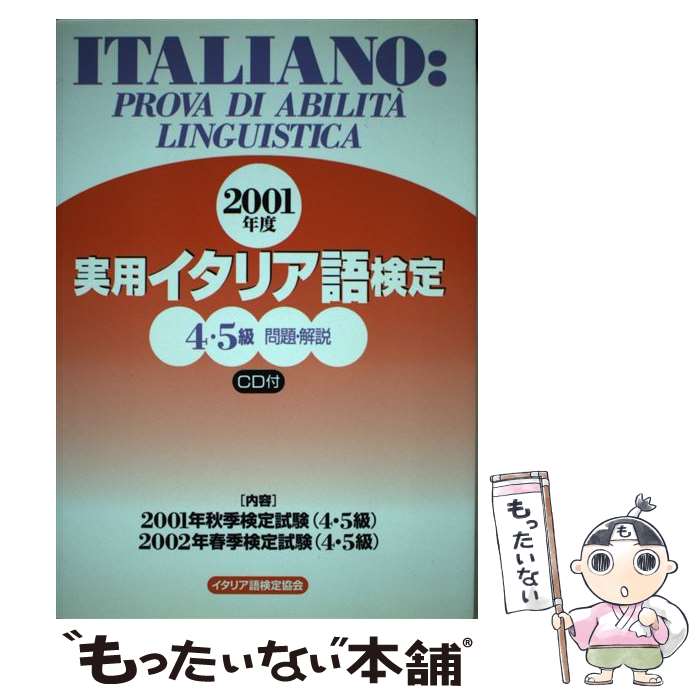 著者:イタリア語検定協会出版社:イタリア語検定協会サイズ:単行本ISBN-10:4756230075ISBN-13:9784756230072■こちらの商品もオススメです ● イタリア語小辞典 クロース装 / 下位 英一, 坂本 鉄男 / 大学書林 [ペーパーバック] ● Giorgia ジョルジア / Mangio Troppa Cioccolata / Giorgia ジョルジア / 株式会社ソニー・ミュージックエンタテインメント [CD] ● Lei,gli amici e tutto il resto ネック / Nek / Wea/Latina [CD] ● はじめてのイタリア語 / 山内 路江, クラウディア オリヴィエーリ / ナツメ社 [単行本] ■通常24時間以内に出荷可能です。※繁忙期やセール等、ご注文数が多い日につきましては 発送まで72時間かかる場合があります。あらかじめご了承ください。■宅配便(送料398円)にて出荷致します。合計3980円以上は送料無料。■ただいま、オリジナルカレンダーをプレゼントしております。■送料無料の「もったいない本舗本店」もご利用ください。メール便送料無料です。■お急ぎの方は「もったいない本舗 お急ぎ便店」をご利用ください。最短翌日配送、手数料298円から■中古品ではございますが、良好なコンディションです。決済はクレジットカード等、各種決済方法がご利用可能です。■万が一品質に不備が有った場合は、返金対応。■クリーニング済み。■商品画像に「帯」が付いているものがありますが、中古品のため、実際の商品には付いていない場合がございます。■商品状態の表記につきまして・非常に良い: 使用されてはいますが、 非常にきれいな状態です。 書き込みや線引きはありません。・良い: 比較的綺麗な状態の商品です。 ページやカバーに欠品はありません。 文章を読むのに支障はありません。・可: 文章が問題なく読める状態の商品です。 マーカーやペンで書込があることがあります。 商品の痛みがある場合があります。