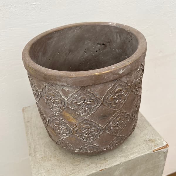 直径18cm、高さ14.5cm 鉢 立体的な模様が浮かぶシンプルなポット COVENTスウィル・シリンダーポットL(QJ-16) 4個セット落ち着いたグレートーンに、立体的な模様が浮かぶシンプルなポット。ざらつきのある素材感が、植物の瑞々しさを引き立てながら、空間にナチュラルな趣を添えてくれます。縦にまっすぐ伸びる円柱型は、ボリュームのある葉物や多肉植物とも好相性。無機質になりがちな空間に、やさしい存在感をもたらすひと鉢です。 サイズ直径18cm、高さ14.5cm(口径15.5cm、深さ12.5cm)素材陶器、穴あり、アンティーク調※写真はイメージです。※植物、撮影資材などは含まれておりません。■商品のお取り寄せに数日かかる場合があります。※「メーカー欠品・入荷待ち」の場合があります。ご注文いただき欠品の場合はご相談をさせていただきます。