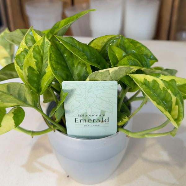流通量の少ない珍しいポトス 浅岡園芸観葉植物/ポトス:エメラルド 3号ポット潤流鉢(穴ナシ鉢カバー入り)入り浅岡園芸さんが育てたポトスエメラルド。浅岡園芸さんが考案した潤流鉢とのセットです。ポトスエメラルドはポトスエンジョイの枝替わり品種で、エメラルドグリーンの斑が入ります。※時期により斑の入り方が異なります。エメラルド色は新芽に出やすいです。また、強い光にあてると斑が白っぽくなる場合がございます。成長すると色が濃くなりやすいです。「潤流(じゅんりゅう)」とは、アロイダーズ浅岡園芸が提唱する観葉植物の水やり方法で、上からたっぷりの水を与えて鉢全体を均一に潤し、受け皿に水を溜めておくことで乾燥を防ぎ、根が心地よく水分を保てる状態を維持することです。水やりの際は鉢にたっぷり水を通して、新鮮な水を1cm程度ためておいてください。タイプサトイモ科エプピレムヌム属 原産地ソロモン諸島日照明るい半日陰を好む耐寒温度5℃以上育て方:半日陰でもよく育ちますが、夏以外は南向きの窓辺などなるべく明るい光にあてた方が葉色が鮮明になります。冬場は乾燥気味に管理し、少しずつ慣らした状態で5℃以上を保つと十分に越冬します。育成期の5〜9月頃は、定期的(2週間に1回程度)に液体肥料を施して下さい。エアコンの側に置くとエアコンの風で葉が傷みますので、なるべくエアコンから離してください。葉についたほこりは時々拭いてください。徐々につるが伸びていきますが、古いつるの部分の葉が落ちて見苦しくなった場合は、思い切って根元から3節くらいの場所で切り戻してください。1か月ほどすると切り口の側から新芽が出てきれいな株姿に戻ります。根詰まりしてくると下葉が黄色くなり生育不良になるので、新しい土を用いて植え替えてください。また、切り取った枝を水を入れたコップに挿しておくと発根しますので、土に植え替えてください。※品種登録または品種登録出願済みの品種ですので、無許諾で苗木等を増殖して販売することはできません。※写真はイメージです。 ■お届け地域につきまして・冬季は寒冷地や配送日数のかかる地域へのお届けができません。(概ね12〜3月、北海道、東北、沖縄、離島など)・但し個別の植物の耐寒温度により、お届け可能であればご相談させていただく場合があります。 ポトス:エメラルド 3号ポット潤流鉢(穴ナシ鉢カバー入り)入りの栽培ガイド観葉植物の管理方法