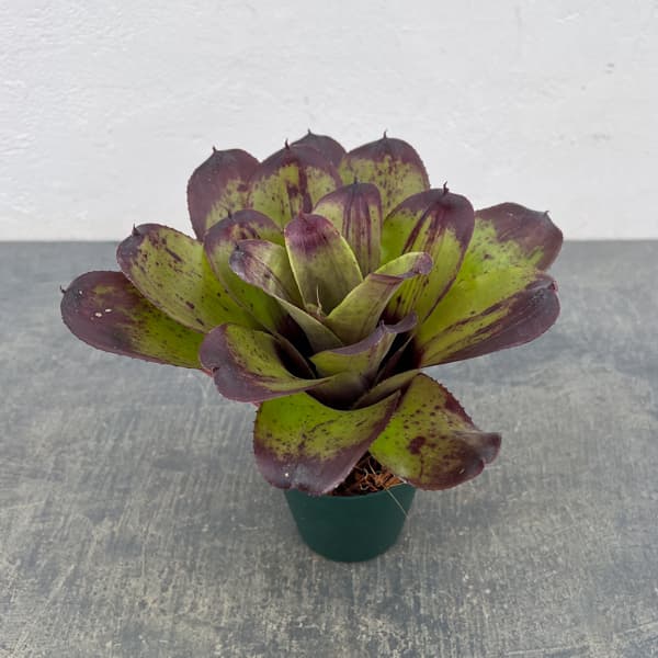 ピンクから赤に色づく葉がきれい観葉植物/ネオレゲリア:ストロベリー ローン 3.5号ポットネオレゲリアストロベリーローンはピンクから赤の鮮やかな発色が美しい人気のブロメリアです。美しい葉模様のネオレゲリアです。ネオレゲリアはブラジルに原生する中〜小型の着生タイプのアナナス類。放射状に葉を広げ、その中心部に水を貯えます。覆輪やストライプ、霧吹きで拭きつけたような斑点のものなどユニークな葉色ばかりです。水の与え方も特徴的で、植え込み材料に与えるのではなく葉の中心部に与えて水を溜めます。タイプパイナップル科ネオレゲリア属の常緑多年草越冬温度5度育て方:ネオレゲリアの根は株を固定する程度の役割で、実際に水分を吸収するところは葉になりますので春以降の生育期は、葉の中心部に水を溜めます。冬季は水を溜めると腐ってしまうので断水します。春〜秋の生育期にはできるだけ日に当てるようにしますが、直射日光では光が強すぎて葉やけをしてしまいますし光量が少なすぎると発色が悪くなります。肥料は緩効性化成肥料などを置肥として2〜3ヶ月に1回程度与えます。※写真はイメージです。ネオレゲリア:ストロベリー ローン 3.5号ポットの栽培ガイド観葉植物の管理方法ネオレゲリアの魅力