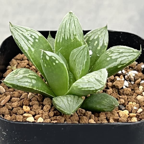多肉植物観葉植物/[ザ・ファームセレクト]ハオルチア:万象 3号鉢植え25-01★現品販売★透明窓の美しい人気のハオルチアです。ハオルチアはぷにぷにとした姿のかわいい多肉植物。南アフリカのケープ地方などに自生する多肉植物の仲間です。多肉植物の中では最も小型で強健な種が多いのが特徴です。乾燥に強く、耐陰性もあるので、室内での栽培にも向いています。学名Haworthiaタイプユリ科ハウォルチア属の多肉植物越冬温度5度以上日照半日陰育て方:明るい日陰を好みます。葉焼けを起こしますので直射日光は避けましょう。夏の高温に弱く、夏季休眠期となりますので、水やりはせず遮光できる場所で管理します。高温多湿には弱く腐りやすいです。暑さが少し落ち着いてきた9月中〜下旬より生育が始まりますので水やりを開始してください。水やりは、2〜3週間に一回程度おこないます。肥料はほとんど必要ありません。用土は多肉・サボテン用のものでよく、できるだけ水はけの良い物にしてください。冬は日当たりの良い室内やフレームの中で管理してください。■ご注意・現品販売です。写真はお届けする株の画像ですが、植物は日々生育等により状態が変化するため、お届け時に株姿が若干異なる場合があります。・複数店舗で同時販売しているため、ご注文のタイミングにより、商品がお届けできなくなる場合があります。ご注文受付後に在庫確認を行い、改めてメールにてご連絡いたします。[ザ・ファームセレクト]ハオルチア:万象 3号鉢植え25-01の栽培ガイド観葉植物の管理方法