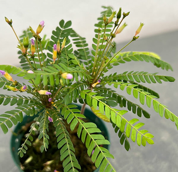 筬葉風露観葉植物/ビオフィツム:センシティブム(オサバフウロ) 2号ポットビオフィタム・センシティブムは、触れると葉が閉じオジギソウに似た性質を持つ小型の植物です。観葉植物として室内で育てることができます。小型のヤシの木のような形状をしており、小さな鉢でも育てやすいです。小さな黄色い花を咲かせることがあり、葉だけでなく花も楽しめる植物です。学名Biophytum sensitivumタイプカタバミ科ビオフィタム属の熱帯性多年生植物育て方:明るい間接光を好みますが、直射日光は避けてください。温暖な環境を好み、15〜30℃の範囲で育てるのが理想的です。寒さには弱いので、冬場は室内で管理してください。水やりは土が乾いたらたっぷりと水を与えますが、過湿には注意が必要です。排水性の良い土を使用し、鉢底に水が溜まらないようにしてください。成長期(春〜夏)には、薄めた液体肥料を月に1〜2回与えると元気に育ちます。※写真はイメージです。 ■お届け地域につきまして・冬季は寒冷地や配送日数のかかる地域へのお届けができません。(概ね12〜3月、北海道、東北、沖縄、離島など)・但し個別の植物の耐寒温度により、お届け可能であればご相談させていただく場合があります。 ビオフィツム:センシティブム(オサバフウロ) 2号ポットの栽培ガイド観葉植物の管理方法