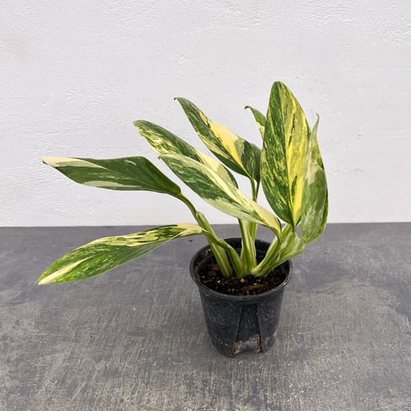 丈夫な観葉植物 むらかみ園芸 現品販売観葉植物/モンステラ:スタンディアナ イエローバリエガータ 3.5号ポット★現品販売★むらかみ園芸さんがタイで見つけてきた美しいモンステラスタンディアナのイエロー斑入りです。鳥の羽のような葉姿から別名ハネカズラと呼ばれる、モンステラの仲間です。希少斑入りタイプで、とてもさわやかな印象です。半ツル性の植物なので、吊り鉢や支柱に這わせて育てても面白いです。学名Monstera standleyanaタイプサトイモ科の非耐寒性多年草原産国熱帯アメリカ越冬温度10度育て方:耐陰性があるので、室内の半日陰におきます。夏の間は戸外の半日陰に出すこともできます。冬は霜にあてなければ屋外の南側の軒下などでも冬越しできます。水切れしやすいので、夏はたっぷりと、秋から春は鉢土の表面が乾いたら水やりします。年間を通して葉に霧吹きで水をかける「葉水」をすると葉のつやがよく生き生きとします。春から秋は1ヶ月に1回程度、液肥を規定倍率に薄めて与えます。鉢いっぱいになったら、6月〜8月に株分けしてください。■ご注意・現品販売です。写真はお届けする株の画像ですが、植物は日々生育等により状態が変化するため、お届け時に株姿が若干異なる場合があります。・複数店舗で同時販売しているため、ご注文のタイミングにより、商品がお届けできなくなる場合があります。ご注文受付後に在庫確認を行い、改めてメールにてご連絡いたします。 ■お届け地域につきまして・冬季は寒冷地や配送日数のかかる地域へのお届けができません。(概ね12〜3月、北海道、東北、沖縄、離島など)・但し個別の植物の耐寒温度により、お届け可能であればご相談させていただく場合があります。 モンステラ:スタンディアナ イエローバリエガータ 3.5号ポットの栽培ガイド観葉植物の管理方法インテリアにおすすめの、縁起の良い観葉植物
