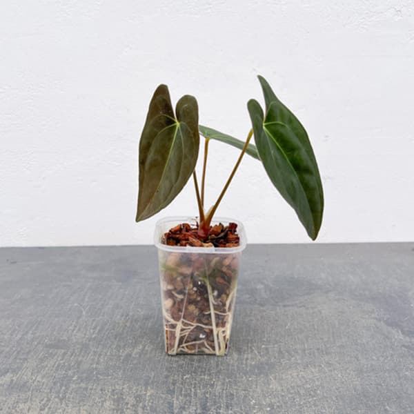 森尾花園さん 深緑のベルベットリーフが魅力の希少なアンスリウム観葉植物/アンスリウム:パピリラリナム 3号ネガミエル×ねこチップ植えアンスリウム・パピリラミナムは、深い緑色のベルベット状の葉が魅力の希少なアンスリウムです。葉はハート形で、表面には微細な突起があり、独特の質感と美しい葉脈のコントラストを楽しめます。本商品は、根の様子が見える透明鉢「ネガミエル」に、通気性・排水性に優れた「ねこチップ」で植え込んでいます。根の状態を確認しやすく、管理もしやすい仕立てです。ベルベットのような質感の葉と深い緑色が美しく、葉の魅力をじっくり楽しめるアンスリウムです。学名Anthurium papillilaminumタイプサトイモ科の非耐寒性多年草原産国熱帯アメリカ日照半日陰耐寒温度7度管理方法:直射日光の当たらない室内で管理します。高温・多湿を好みますが、鉢土が常時湿った状態にしておくと根腐れすることがありますのでご注意ください。鉢土はあまり加湿せずに、葉水などを小まめに与えてください。寒さにはやや弱いので、通年暖かいところで管理してあげるとよいでしょう。生育期に置肥を控えめに与えます。 ■お届け地域につきまして・冬季は寒冷地や配送日数のかかる地域へのお届けができません。(概ね12〜3月、北海道、東北、沖縄、離島など)・但し個別の植物の耐寒温度により、お届け可能であればご相談させていただく場合があります。 ※写真はイメージです。時期によりボリュームは異なります。アンスリウム:パピリラリナム 3号ネガミエル×ねこチップ植えの栽培ガイド観葉植物の管理方法インテリアにおすすめの、縁起の良い観葉植物インテリアで長く楽しめる花観葉・アンスリウム