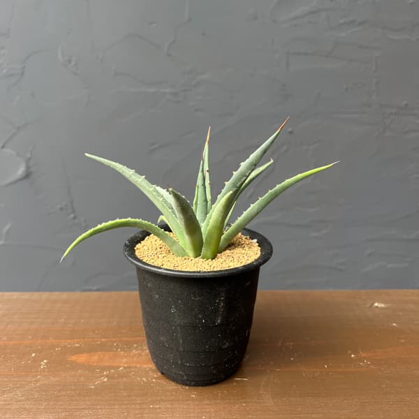 リュウゼツラン 耐寒性アガベ観葉植物/アガベ:ユタエンシス ユタエンシス 3号鉢植えアガベユタエンシス ユタエンシスは葉が青灰色で、先端のアイボリー色の棘が特徴的な耐寒性アガベです。アメリカのユタ州、ネバダ州、カリフォルニアに自生するアガベで、山地に小さな群れをつくり、成株の大きさは草丈30cmと小型の品種です。耐寒性の高いアガベです。学名Agave utahensis var. eborispinaタイプリュウゼツラン科(キジカクシ科)アガベ属の多肉植物越冬温度マイナス23度まで日照日向〜明るい半日陰管理方法:耐陰性はありますが、できるだけ日光に当てるとよく育ちます。室内の明るい場所で管理してください。春〜秋は戸外で育てることもできます。水遣りは春〜秋は土の表面が乾いたら与え、冬は乾燥気味にします。春〜秋の生育期は緩効性化成肥料の置肥を2ヶ月に1回程度施します。冬季は室内で、窓越しに日光のあたる場所で管理してください。※写真はイメージです。アガベ:ユタエンシス ユタエンシス 3号鉢植えの栽培ガイド観葉植物の管理方法