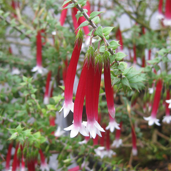 周年繰り返し色鮮やかな赤白の花を咲かせるオーストラリア原産の常緑低木花木 庭木の苗/エパクリス・ロンギフローラ(クリスマスキャンドル)5号ポットクリスマスキャンドルは乾燥地に育つオーストラリア原産の非耐寒性常緑低木です。コントラストが美しい筒状の3cmほどの花が垂れ下がるように咲きます。温度があれば開花する周年開花性を持っているので、年間に何回か繰り返し花が咲きます。特に春はたくさん花を咲かせます。小さな葉が茎に密生します。耐寒性は5度前後までなので、一般には鉢植えにしてコンパクトに仕立てますが、凍らなければ越冬する程度の耐寒性があります。暖地で庭植えにすると高さ1〜1.5mくらいまで育ちます。学名:Epacris longifloraタイプ:エパクリス科エパクリス属の非耐寒性常緑低木花期:周年(温度があれば開花します。特に3〜4月はたくさん花がつきます)樹高:0.5〜1.5m日照:日向〜半日陰向き栽培方法:原産地は乾燥した環境で、高温多湿を嫌います。日向を好みますが、半日陰でも生育します。鉢替えの際は植え付けは赤玉土4、ピートモス3、バーミキュライト3の配合土、または市販の培養土を使用してください。成長に合わせて2年に1回程度、3月下旬ころに一回り大きな鉢に植え替えます。日当たりのよい場所で管理します。花後は刈り込んでください。水切れに弱いのですが、逆に過湿にすると根腐れしてしまうので、水はけよく管理してください。5号(直径15cm)ポット植えです。※写真はイメージです。