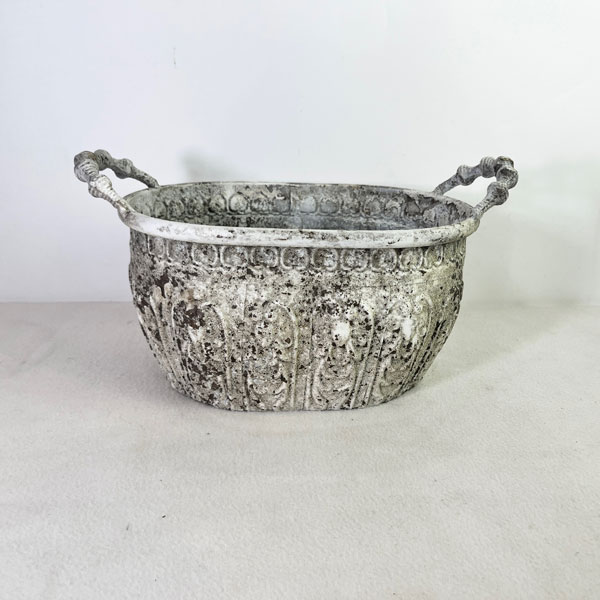 アンティーク風ブリキ鉢ミルヴァ:オーヴァルバケットL(幅34cm・奥行22cm/底穴なし)かわいらしいアンティーク風ブリキのオーバルバスケット。厚みのあるブリキで、しっかりとした作りです。独特の風合いが、瑞々しいグリーンを引き立ててくれます。底穴が開いていませんので、鉢カバーとしてもご使用できます。サイズ(約)幅34cm、奥行22cm、高さ31cm(内径29×18.5cm)材質ブリキ底穴無し※アンティーク調仕上げとなっており、色ムラ・サビや塗装が剥げたようなところがあるのは、風合いを出すための加工です。※写真はイメージです。植物はついていません。