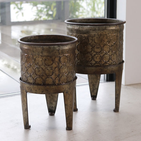 ブロンズカラーの足つき鉢カバー COVENTビザンツ・ブロンズトライポットカバー 2点セット(BZ-22)ブロンズカラーの鉢カバーセットです。華美過ぎない光沢感で、シックな空間に植物をなじませてくれます。サイズ(約)L直径23cm、高さ34.5cm S直径20cm、高さ30cmポットサイズ(約)L直径23cm、高さ18.5cmS直径20cm、高さ16.5cm口径(約)L.直径21.5cm S.直径18cm深さL.18cm S.16cm材質スチール※写真はイメージです。※植物、撮影資材などは含まれておりません。■この商品はメーカー直送にてお届けのため、下記サービスについてはお受けできません。・日曜祝日指定・時間帯指定・メッセージカードの添付■お届け地域について ・北海道、沖縄、離島へのお届けは、追加送料(実費)をいただきます。 ※メーカー直送品のため、タイミングにより欠品・入荷待ちとなる場合があります。ご注文前にお問い合わせいただけましたらご案内致します。欠品の場合はお届け時期等についてご相談をさせていただきます。